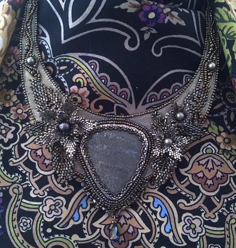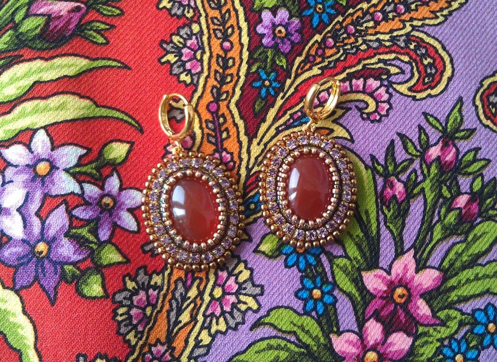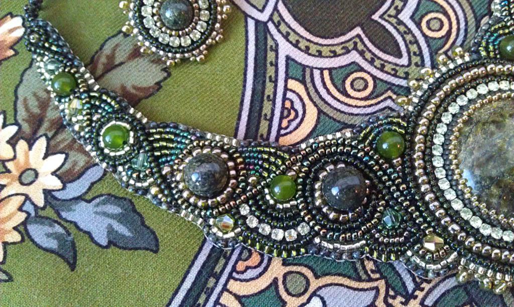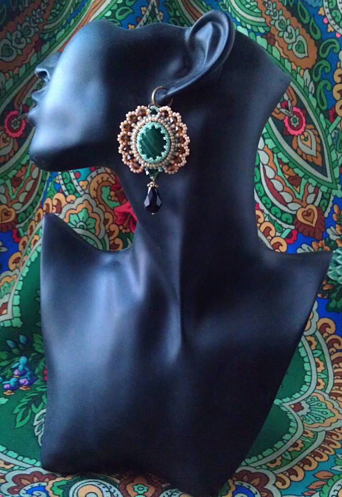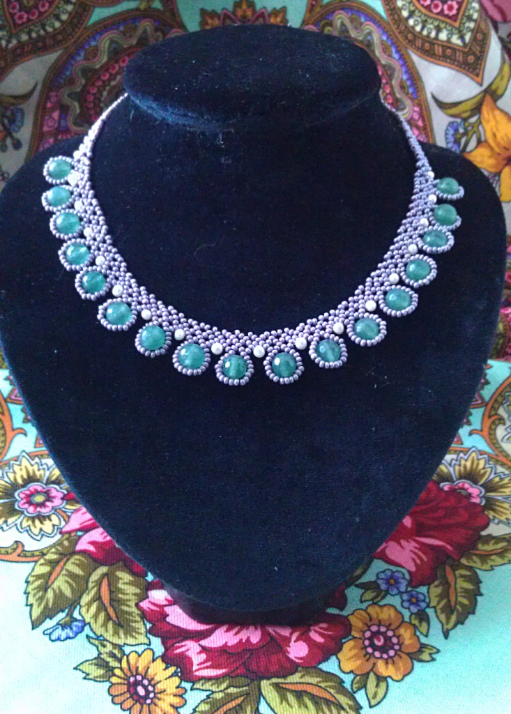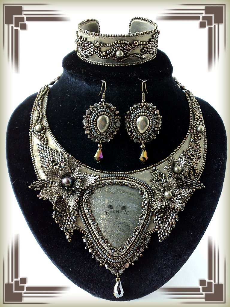 Этот комплект был сделан еще в феврале, под мои любимые Качели. Но как оказалось, комплект так же подошел и к шали У самовара 1 (правда этой шалочки уже нет). Вставки из уральского змеевика, Волжского симбирцита и нефрита.