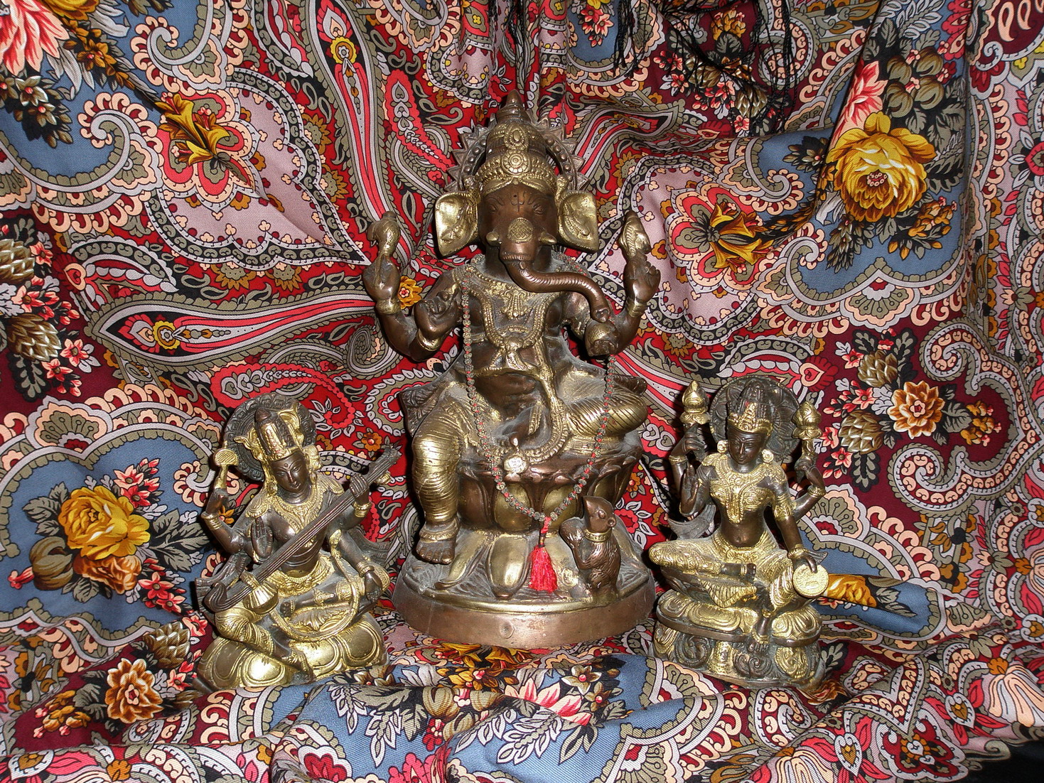 Да это индийские бронзовые статуэтки. Каждая имеет свое значение. Посередине Ганеша – устраняет препятствия на нашем пути и приносит удачу, справа от него Сарасвати – покровительствует искусству и красоте, слева Лакшми – приносит материальное благополучие и процветание.Leonora писал(а):Какие интересные статуэтки! Это сувениры из Индии?