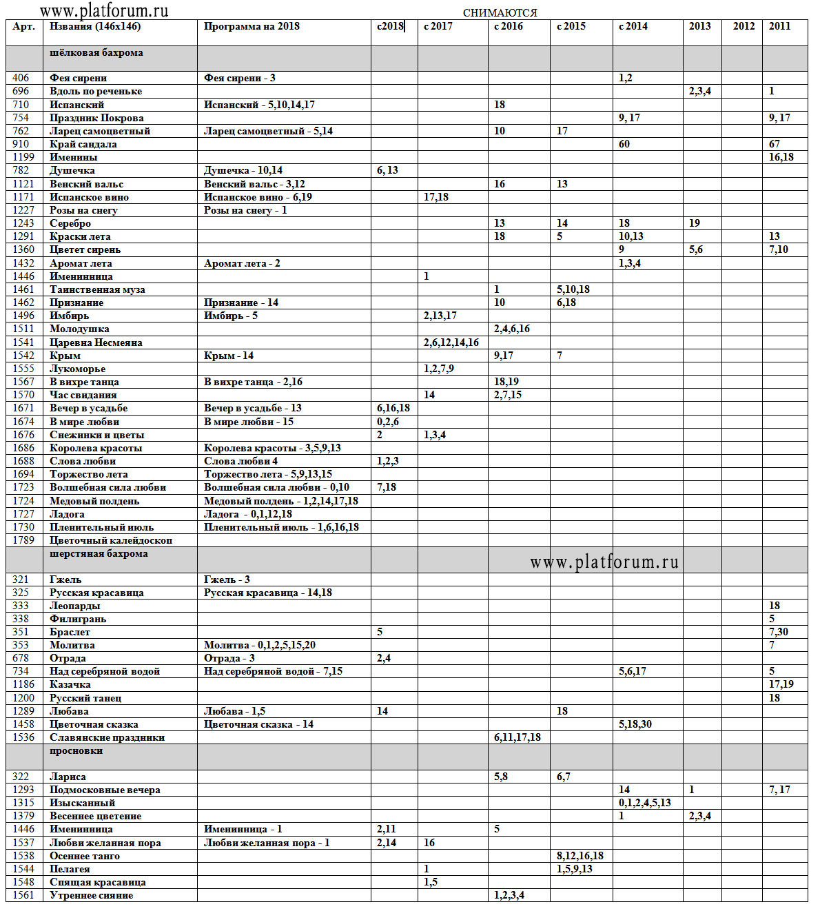 Нет в программе БР 14,Майя 27,Радоница 7 и 14,Старый замок 6,Медальонов и Губернаторских,Сказок тоже нет.Славянка остаётся бирюзовая,Счастливица остаётся 18 и 3.