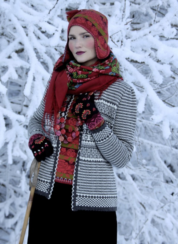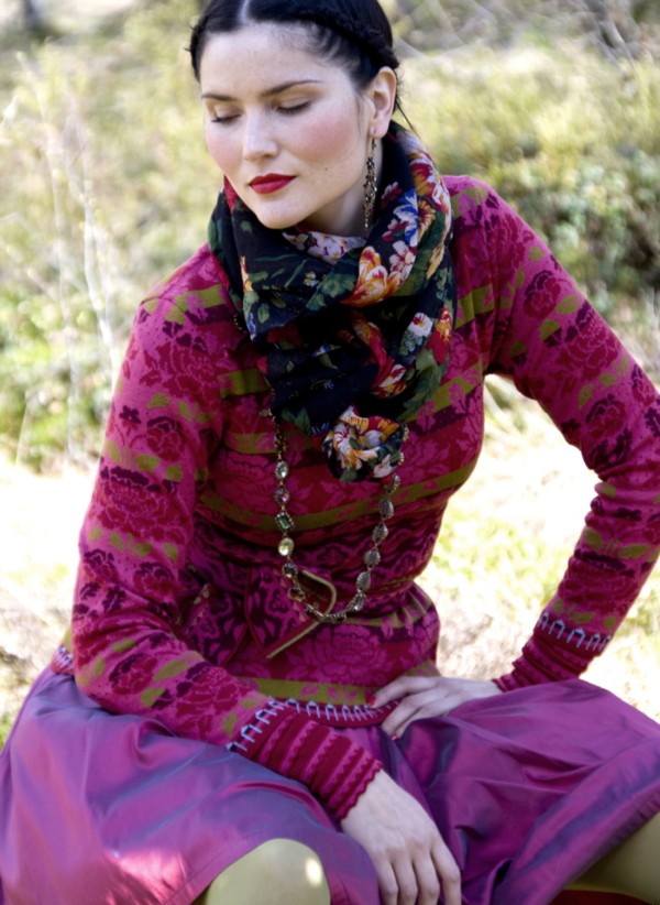 Некогда случайно наткнулась на один сайт, там увидела на девушке Волшебный узор 18-го колорита. В сочетании с таким дизайном одежды весьма впечатлил, и заставил посмотреть на этот платок с бОльшим вниманием. В итоге, платок купила, хотя такой одёжки у меня нет. Если такая ссылка уже была, прошу прощенья...