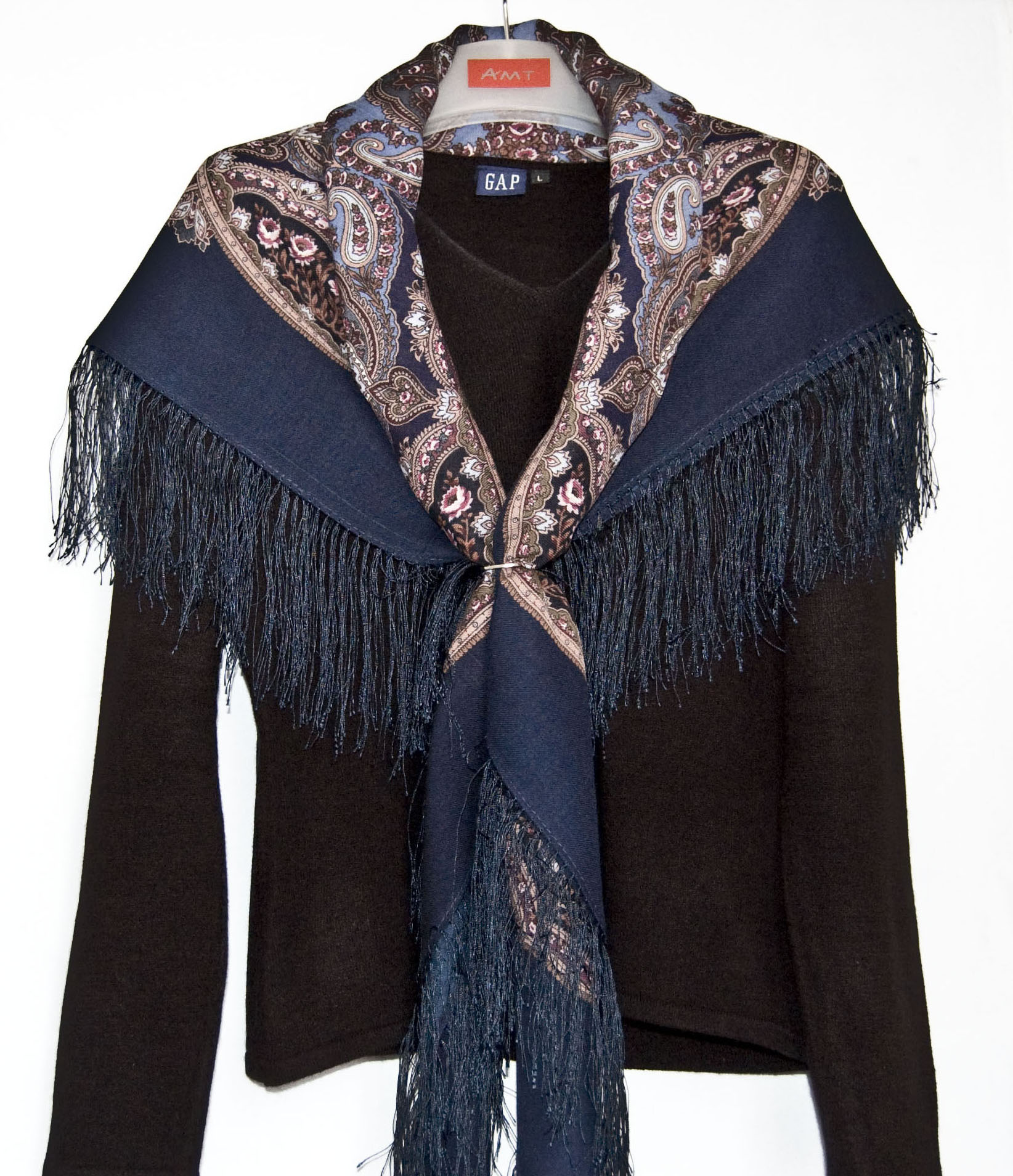 Забыла главное написать - хожу сейчас на работе в юбке из платка 146х146 под ремень с кожаным жакетом - реакция населения - одобрительная. И весьма. буду носить дальше. Ах, дорогая Eva , оказалось не только приятно, красиво, но еще и удобно, шелк бахромы так по ногам славно шелестит, а юбка комфортная мягкая. Какое счастье, что Вам пришло в голову воспользоваться услугами Яны и описать это все для нас!!! Здорово!!!