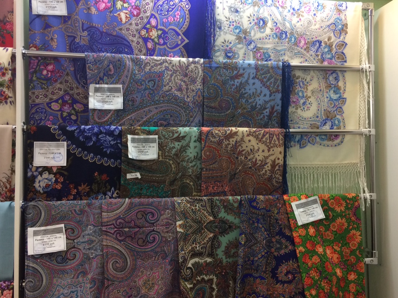 Я купила на подарки парочку палантинов Город золотой, они там всех расцветок, но фото этой витрины я не сделала почему-то