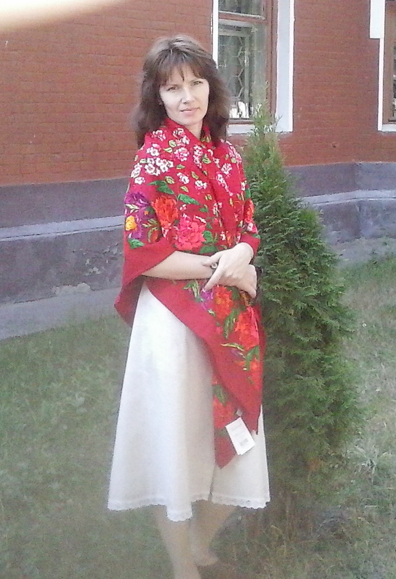 А я Разводной -10 мерила :roll: необыкновенная шаль, ни на что не похожая. И бахрома шерстяная -впечатление старинного платка в идеальной сохранности. Прямо винтаж в чистом виде. Очарована...