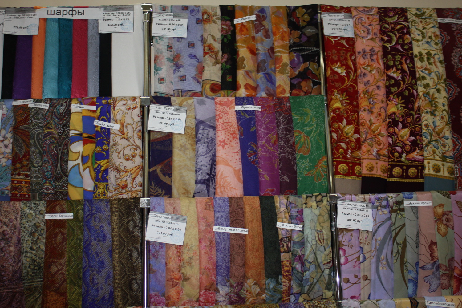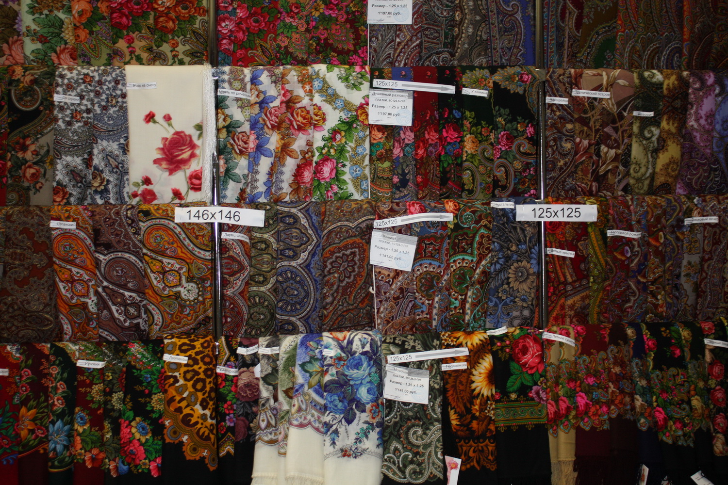 Вообще, в магазине в Марьино ассортимент слабоват по сравнению с другими московскими магазинами ПП платков... Часто нет пользующихся спросом шалей, завоз 1 раз в 2 недели... Я спросила продавцов, почему они не заказывают закончившиеся колориты, на что мне ответили, что их старший продавец не любит "захламлять" магазин, и говорит, что пусть покупатели раскупают, то, что есть в наличии... На мой взгляд - странная политика для современной торговли... Ведь ясно же, что покупатель не купит то, что ему не нравится, а просто поедет в другой магазин и приобретет понравившуюся шаль там... Поэтому, несмотря на то, что магазин в Марьино мне ближе, я предпочитаю покупать в Ветошном...