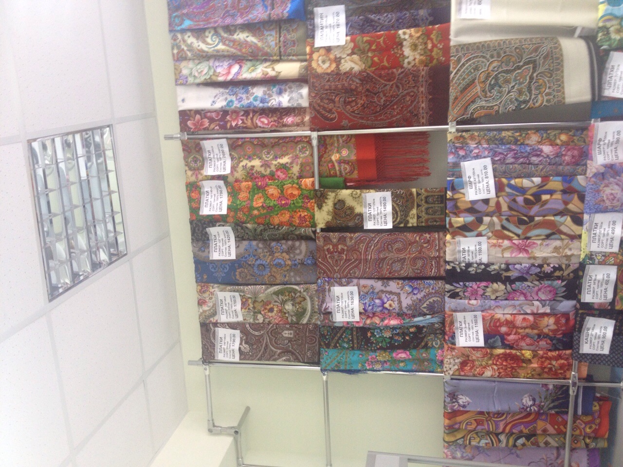 Третий сорт платки были, но мало. Сон бабочки, например, третьего сорта стоит 1490 рублей. Продавцы говорили, что поступление в этот отдел они ожидают на следующей неделе.