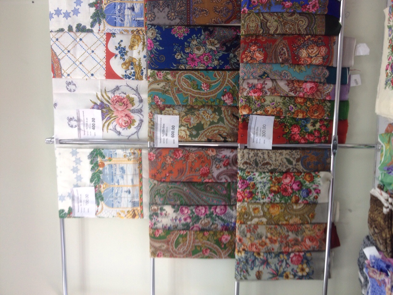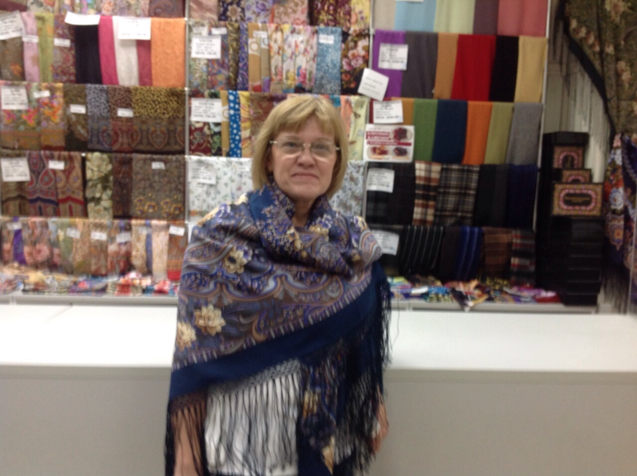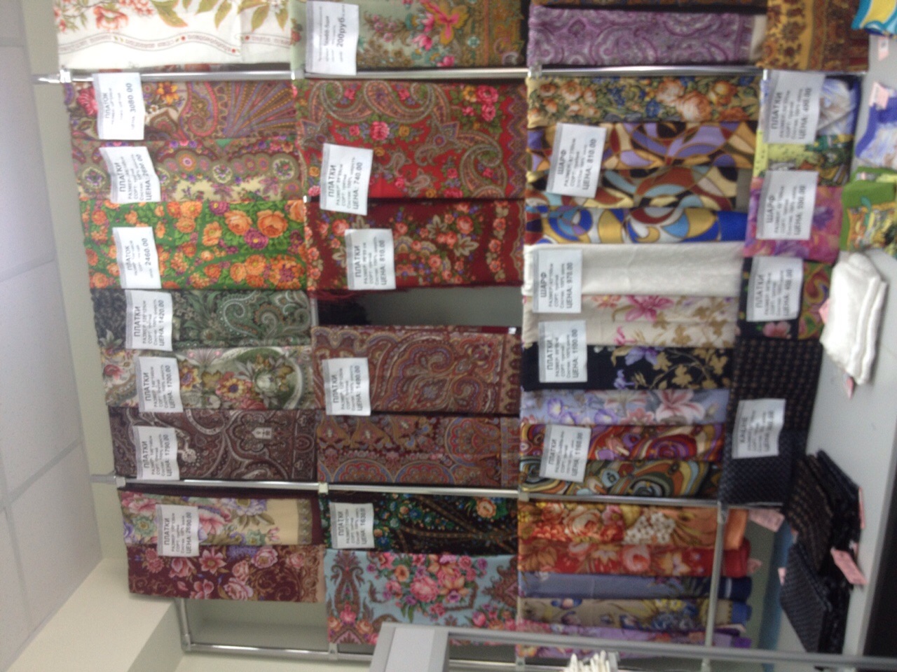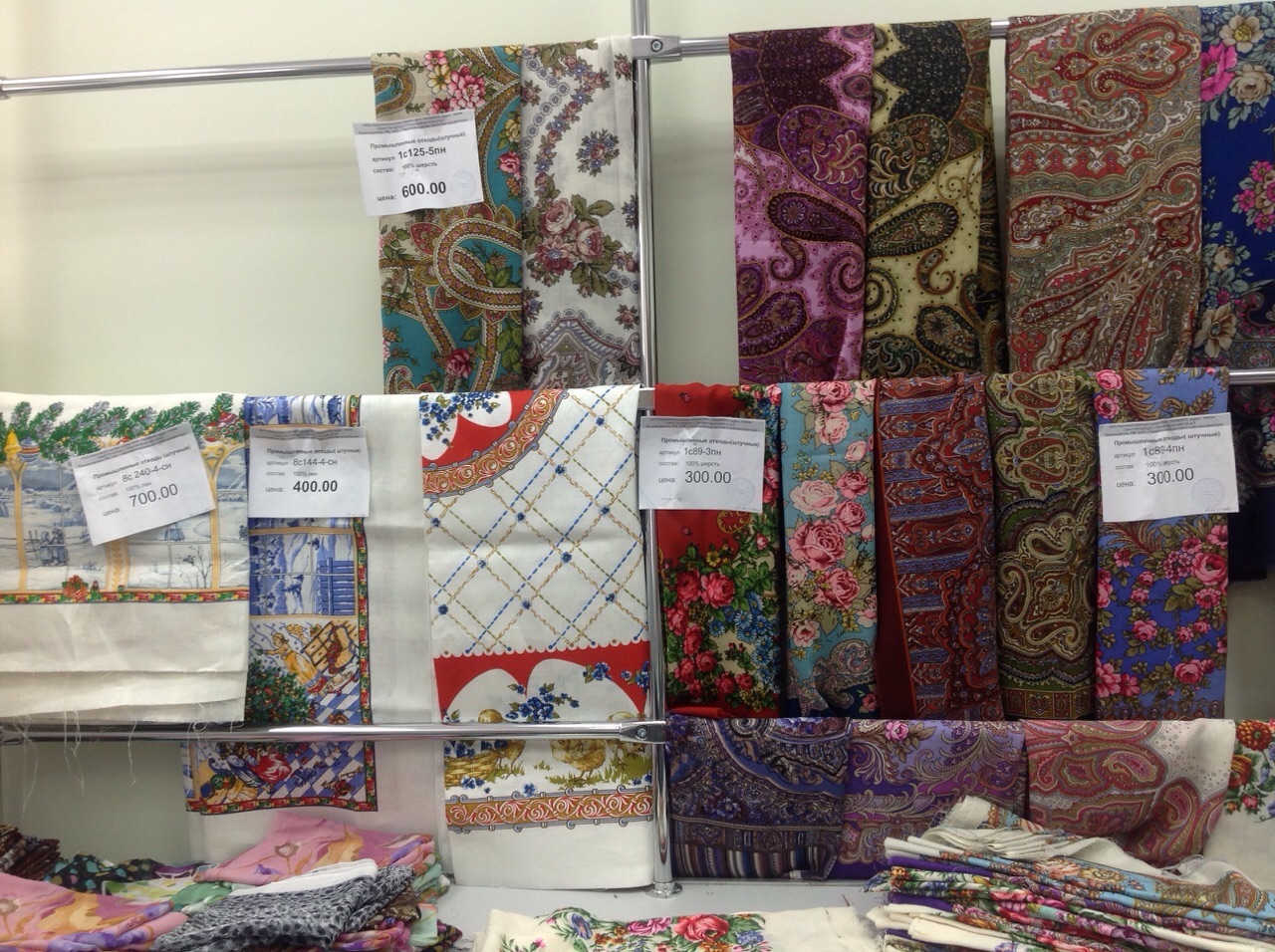 Добавлю фото витрин с шалями в основном отделе.