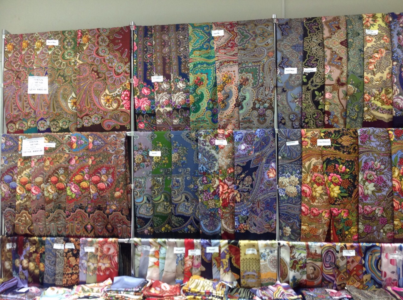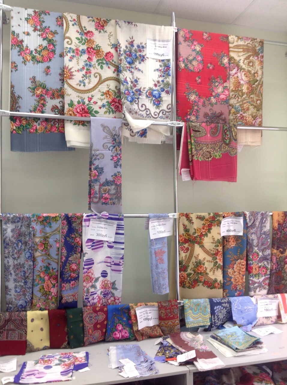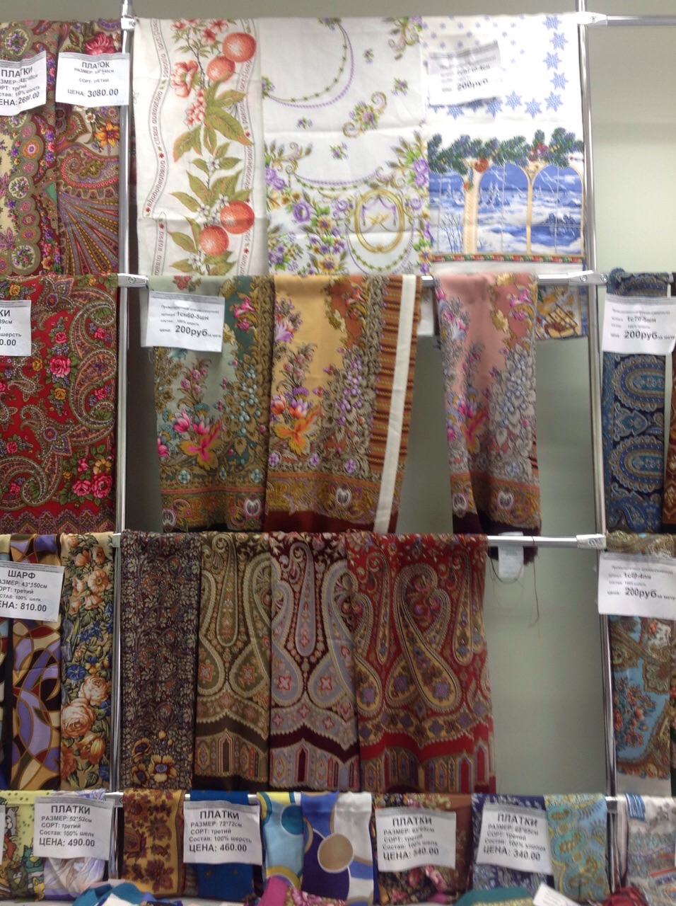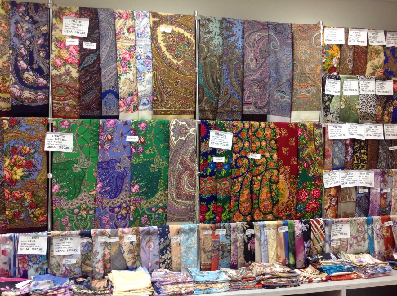 Добавлю фото витрин с шалями в основном отделе.
