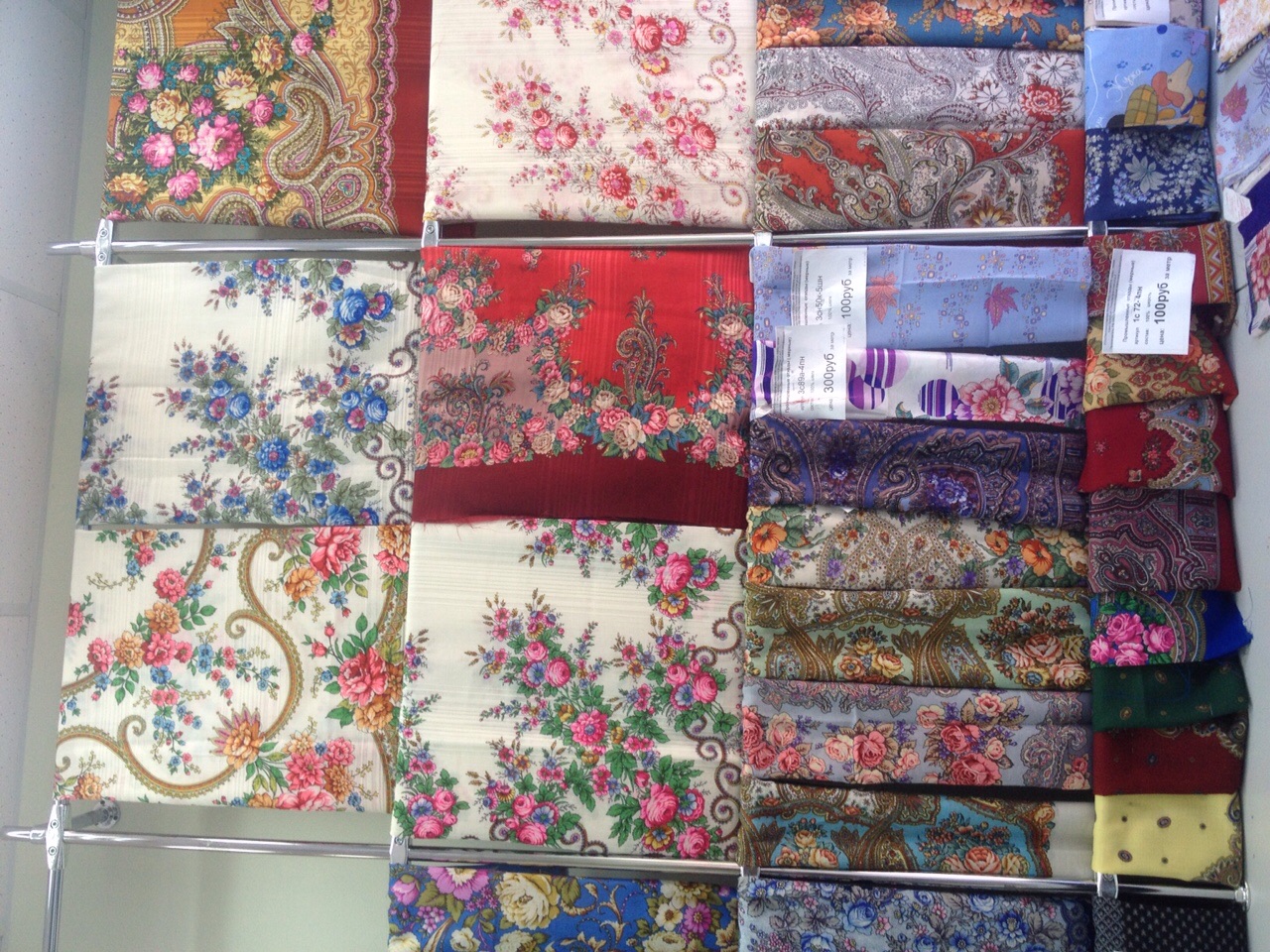 Здесь мерный лоскут платков разного размера.