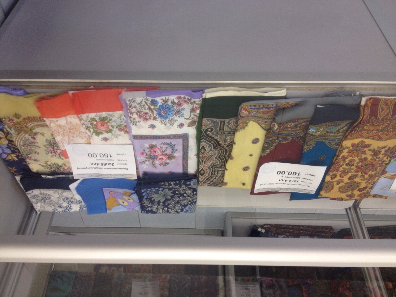 Маша купила в итоге три платка, что смогла выбрать, моего, увы, ничего не было. Есть чек, подтверждающий покупку (если в этом магазине имеет право не быть обхамленным только тот, кто что-то купил).