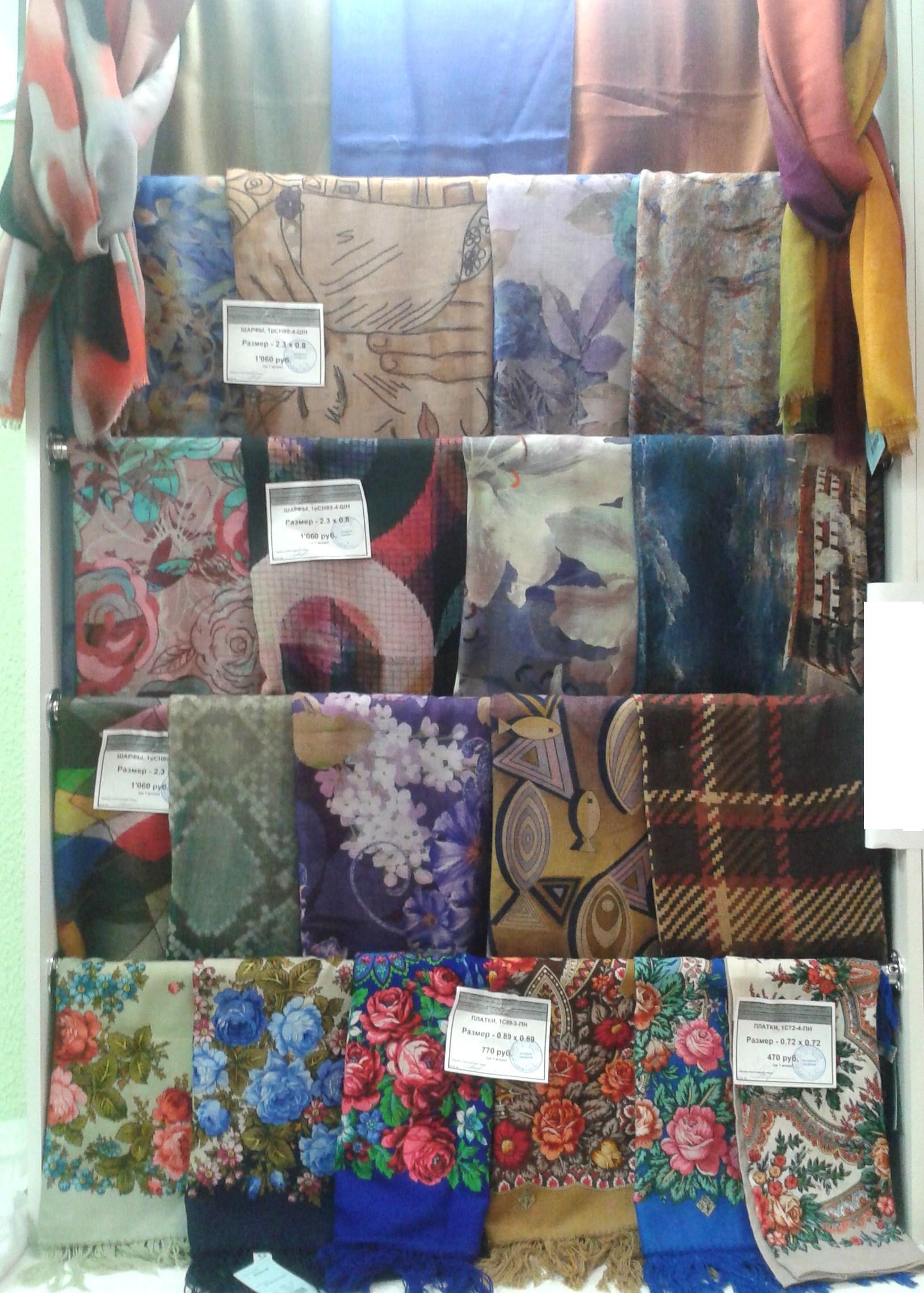 Я была в дисконт- магазине в Реутове, после того, как туда было поступление товара, поделилась наличием ассортимента. Это иногда помогает тем, кто ищет платки подешевле. Очень благодарна со своей стороны продавцам, давшим объявление о поступлении товара и всем, кто делает такие сообщения и фото витрин.