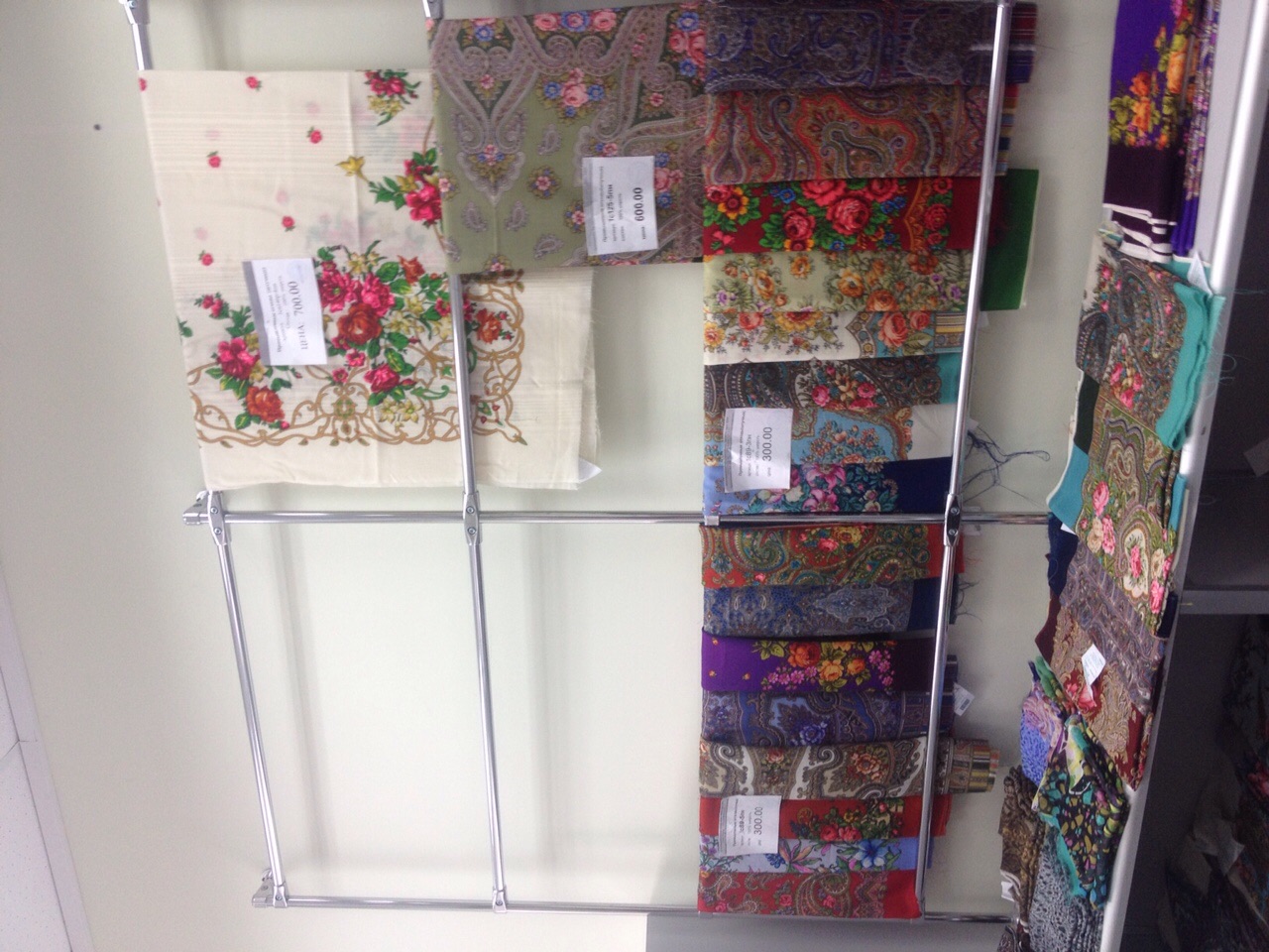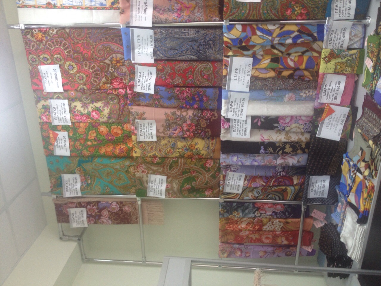 Сфотографировала витрины с платками 3 сорта: