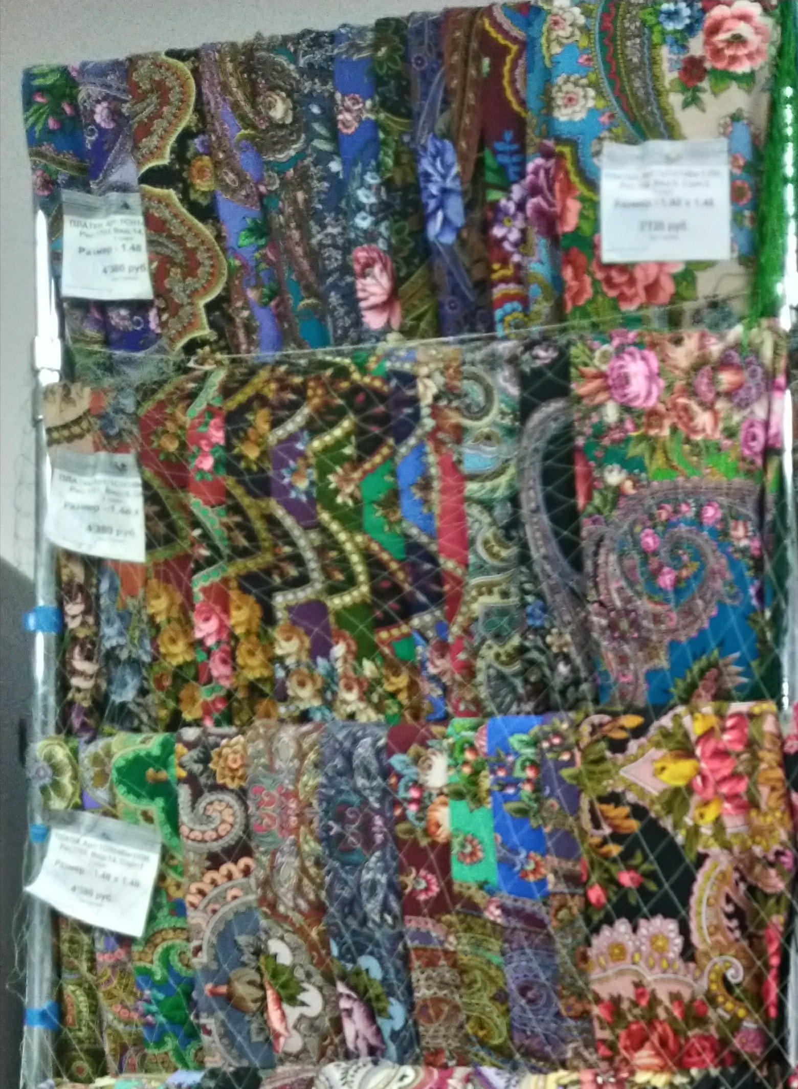 Вчера была в Гордеевском, смотрела только шерсть... Не всё попало в кадр, некоторые 146 и 148 висят отдельно. Остались на витрине даже маленькие покрывала 144х144