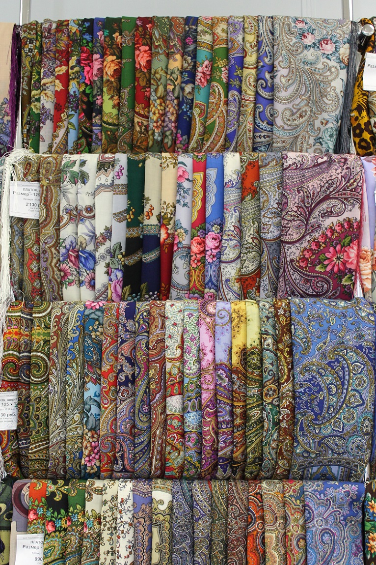 Обновлю тему. Ассортимент на сегодняшний день, правда Казачку-17 я вроде бы не увидела и Малиновку-2 не вывешена, кажется. И стойку с Отрадами и др. белыми платками не сфоткала.