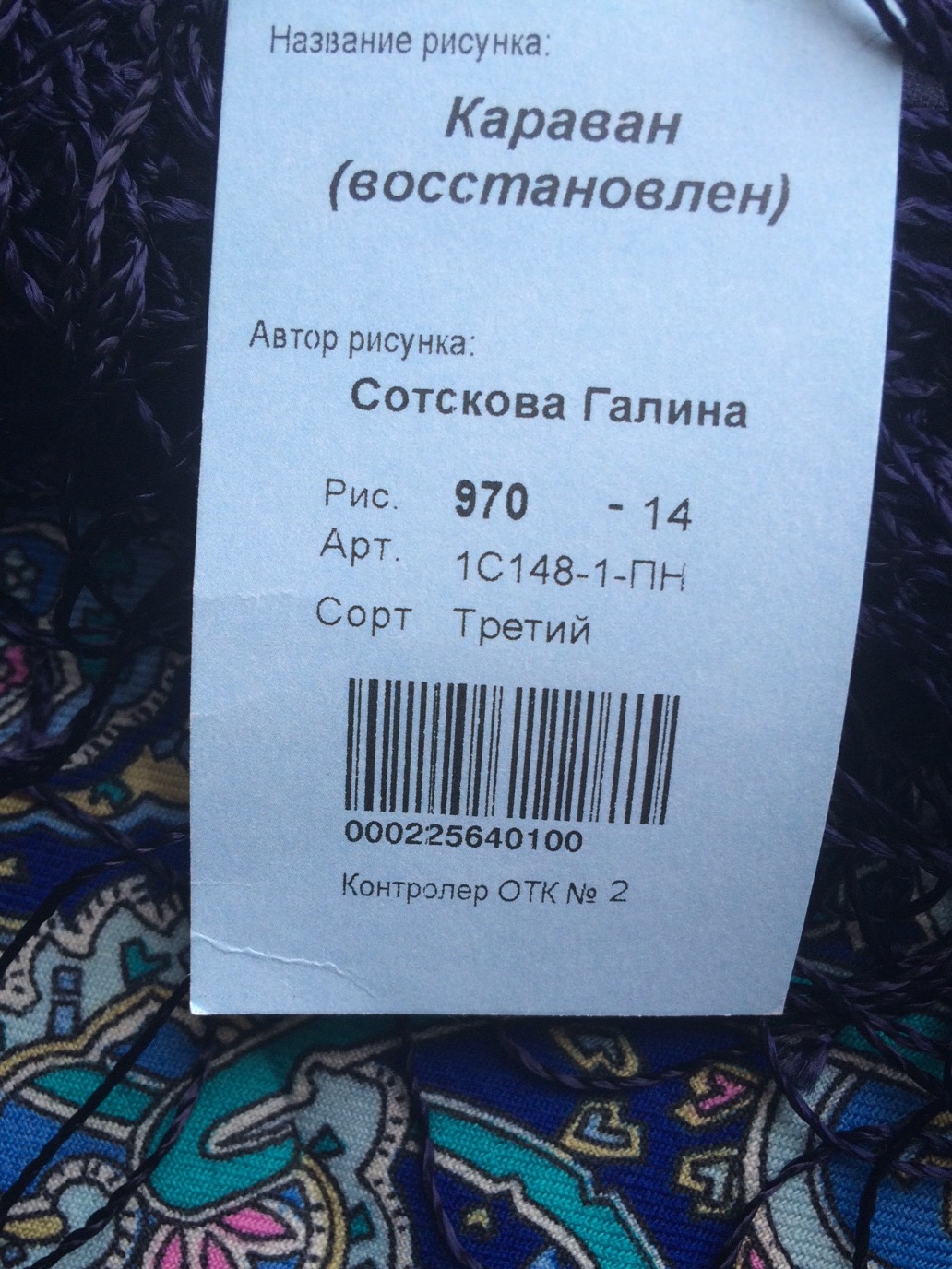 А вот этикетка шали 3-го сорта, купленной в отделе лоскута магазина Павловского Посада.