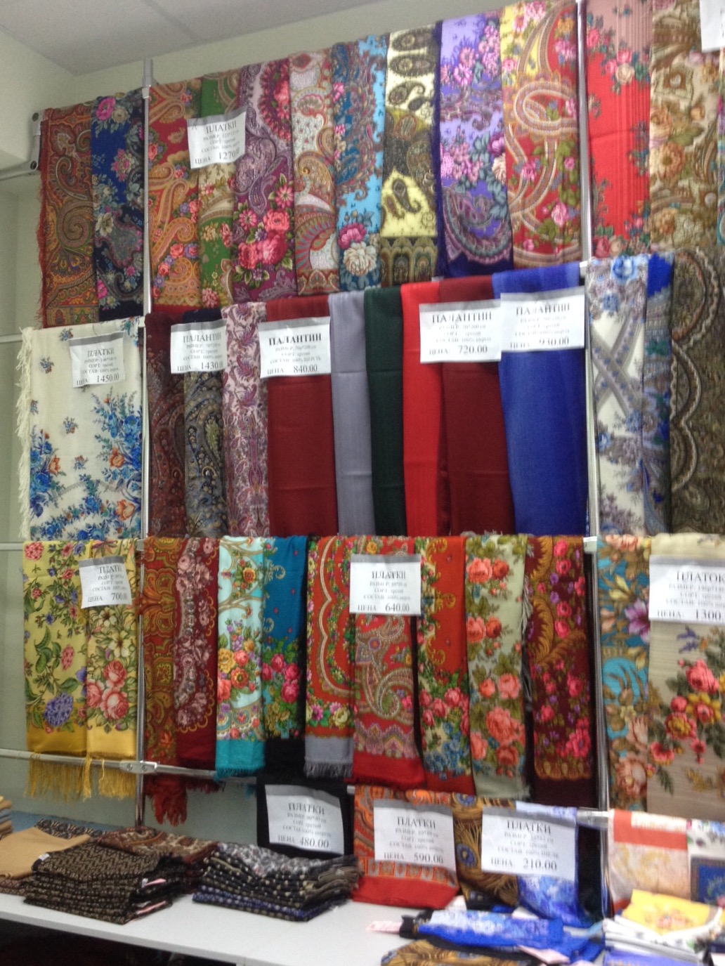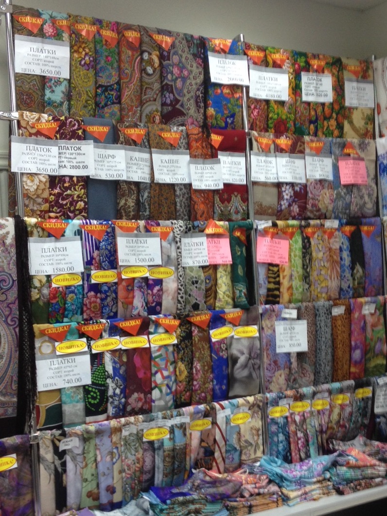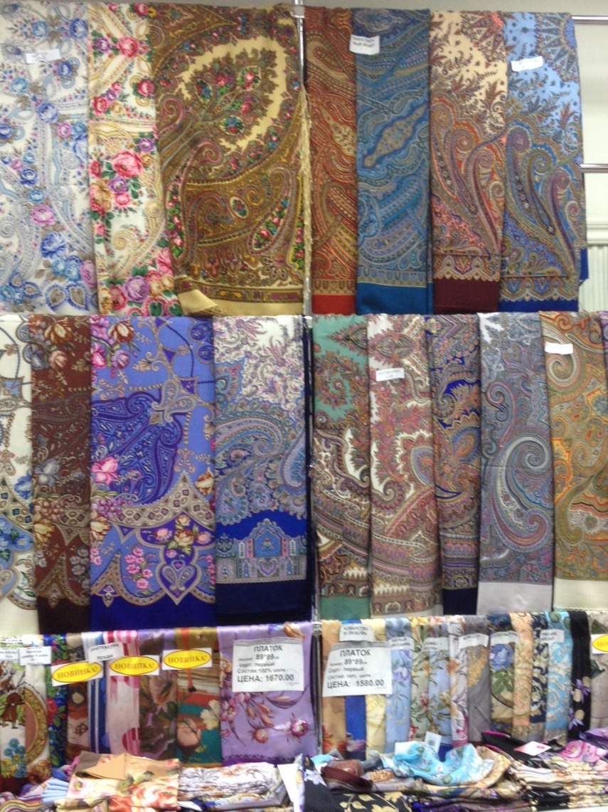 Фото витрин с шалями первого сорта: