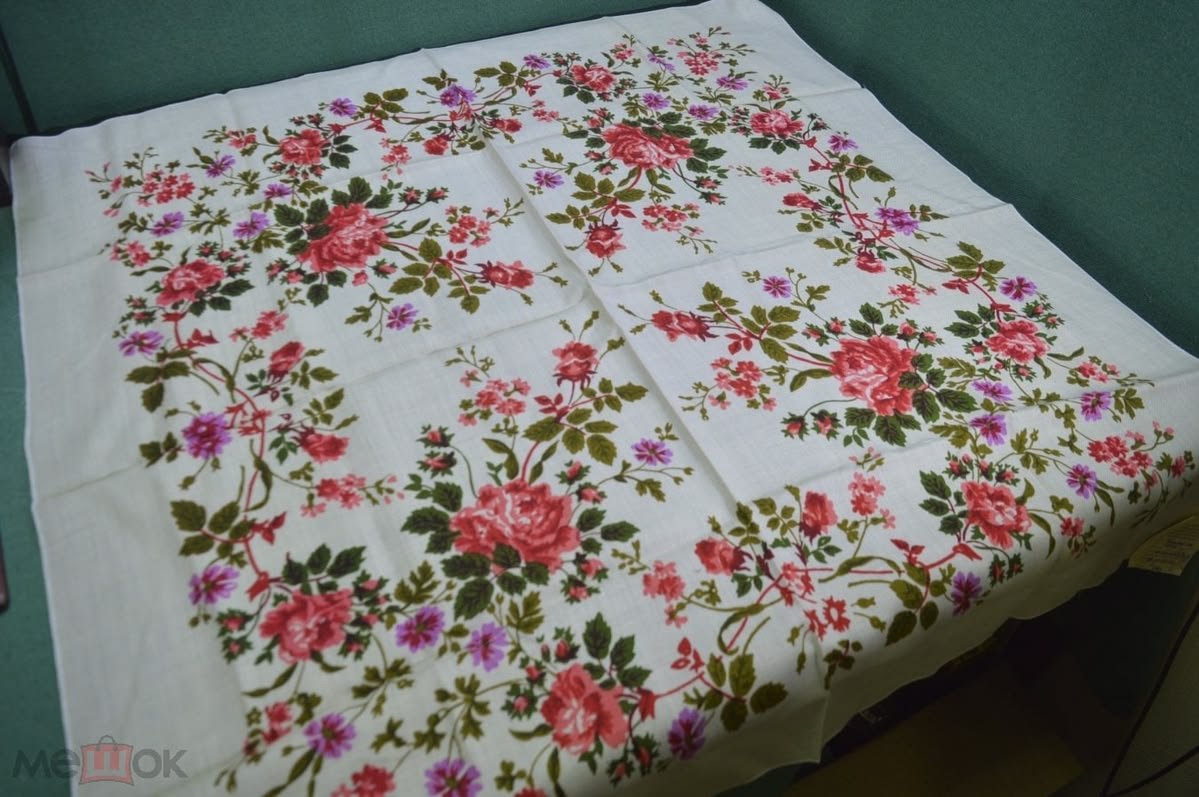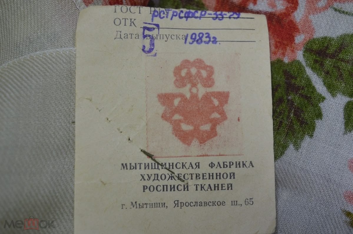 Мытищинская фабрика художественной росписи тканей, 1983г. а сам платок вот такой Даже не поняла, шерсть или хлопок.
