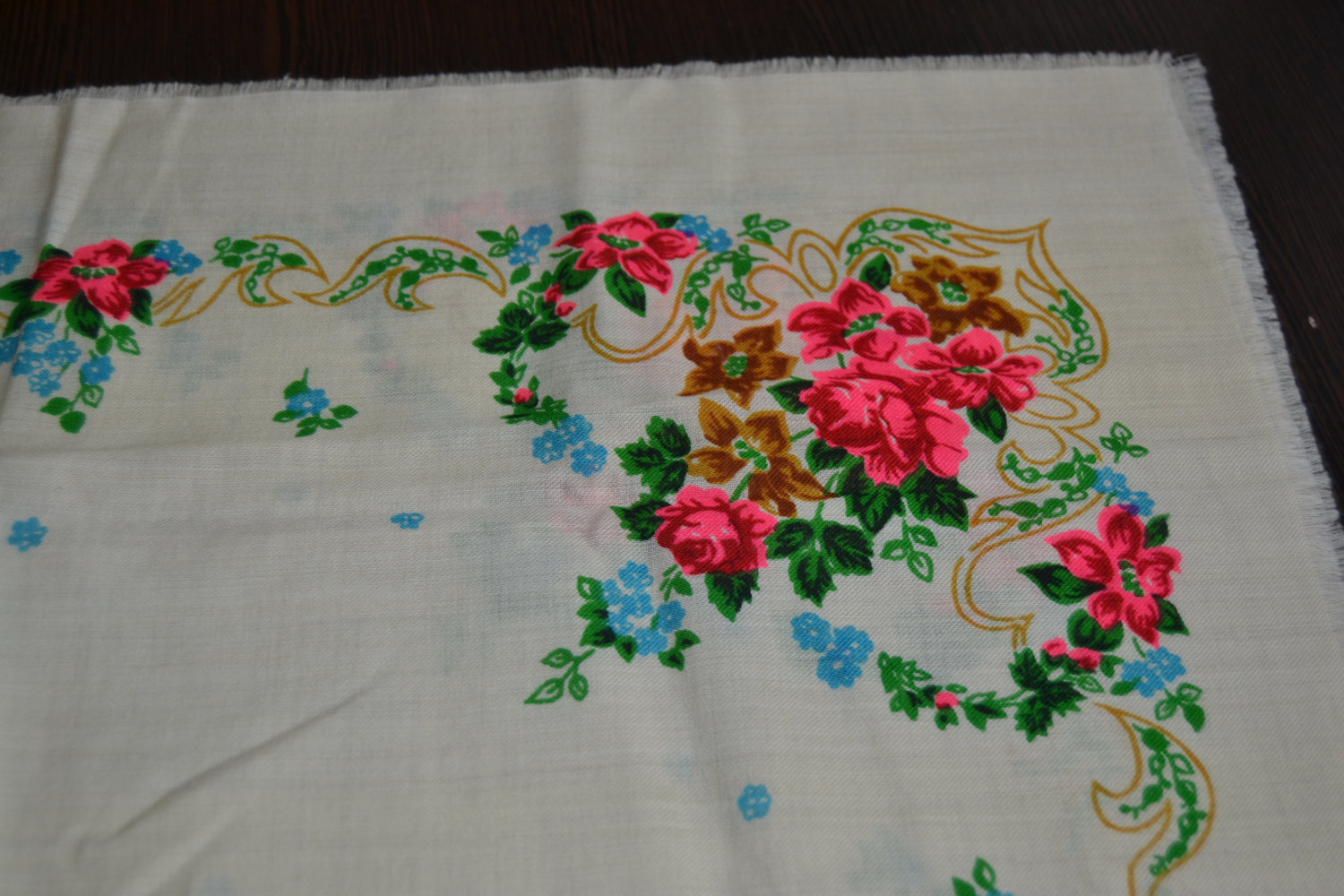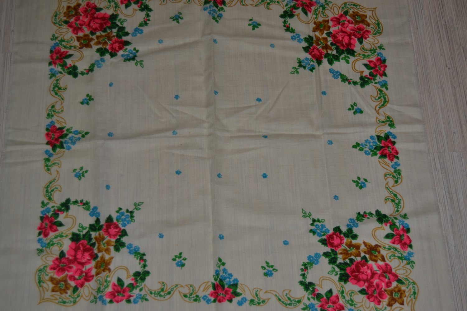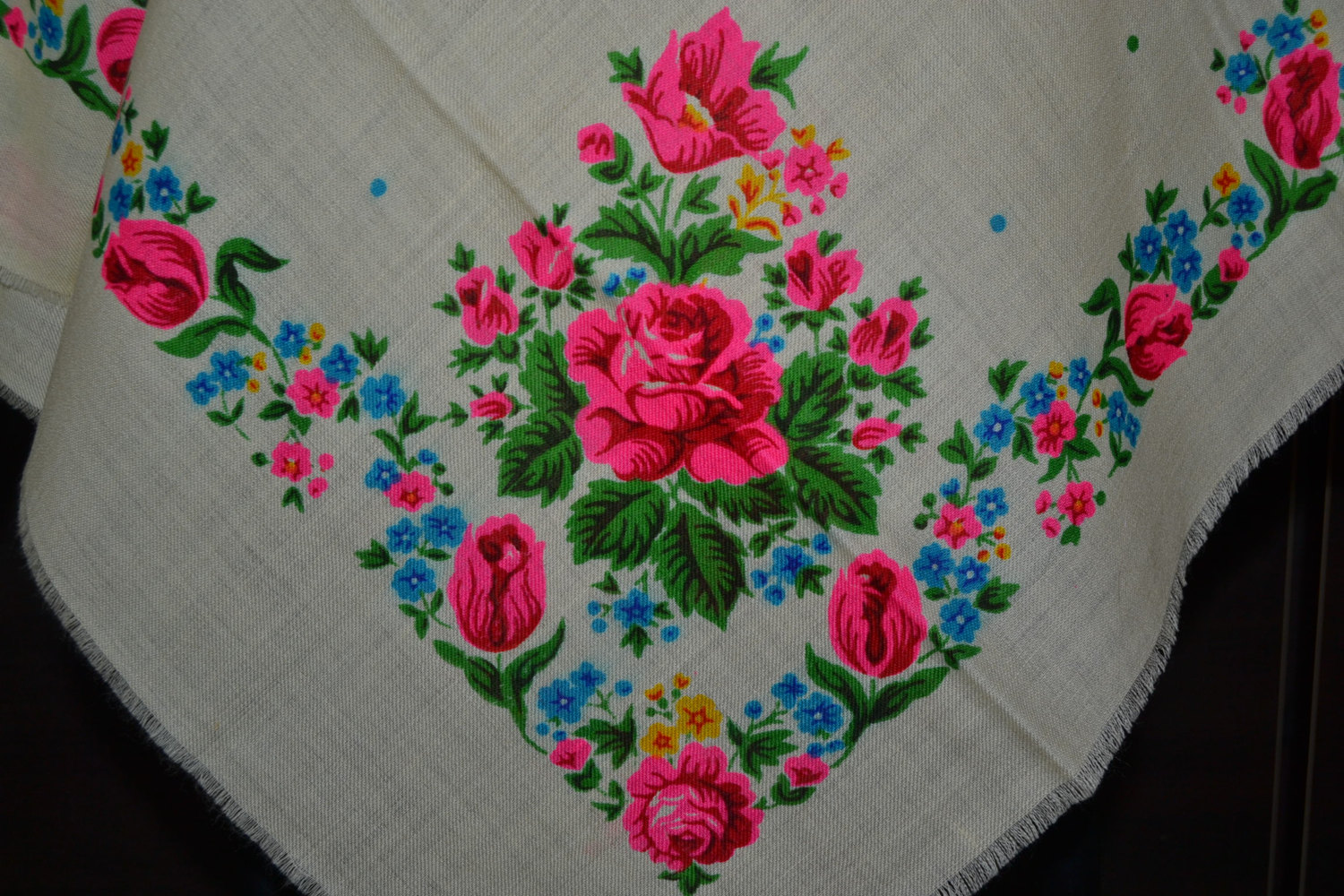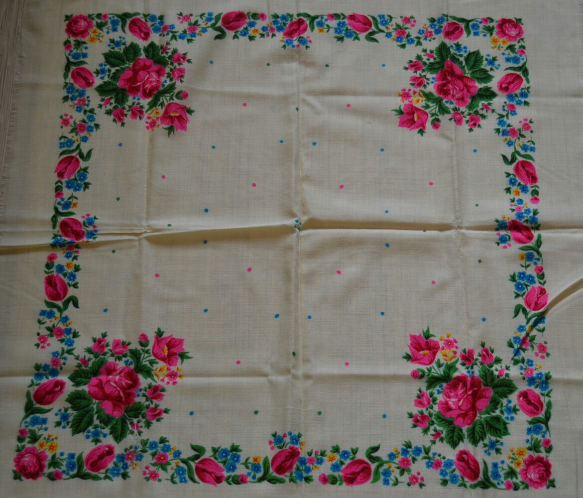 Другой платок аналогичного колорита с этикеткой киевской фабрики ТРОЯНДА