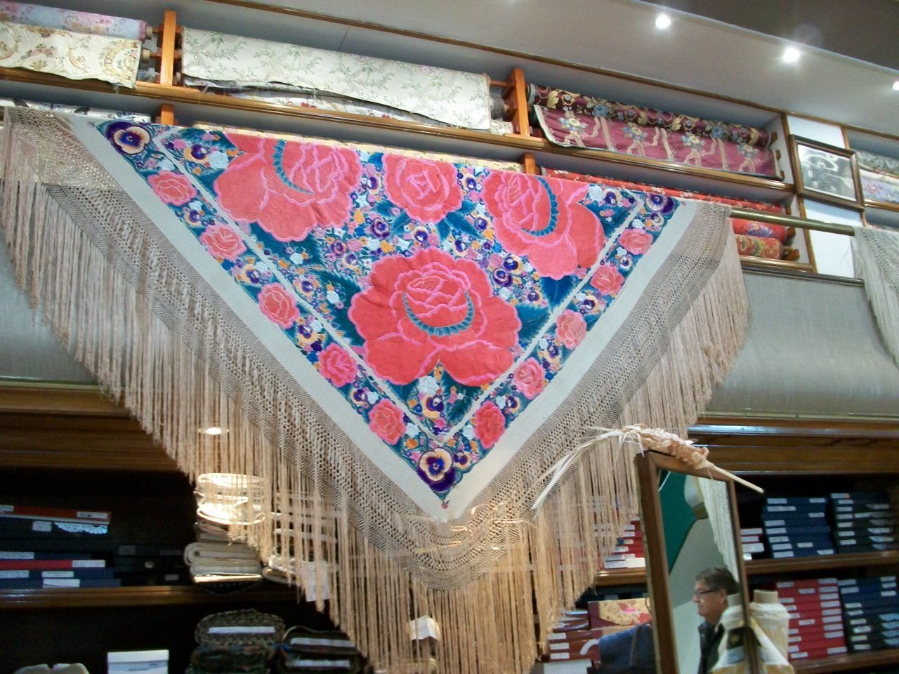 Леонора сейчас действительно сезон путешествий "по страницам памяти" и фотоархивам. Каких роскошных Мантонов Вы запечатлели. Я не перестаю любоваться их кистями. Там целое отдельное плетеное полотно предшествует шелковым кистям. Удивительно, что их шелковые кисти живут и с возрастом не лохматятся/пушистятся, хотя, да, могут крепко мяться, так что требуют ухода и особого хранения. Я Вам крепко сейчас пожелаю доехать и в Севилью, и в Кордову, а Вы мне потом оттуда привет на форуме пришлете.