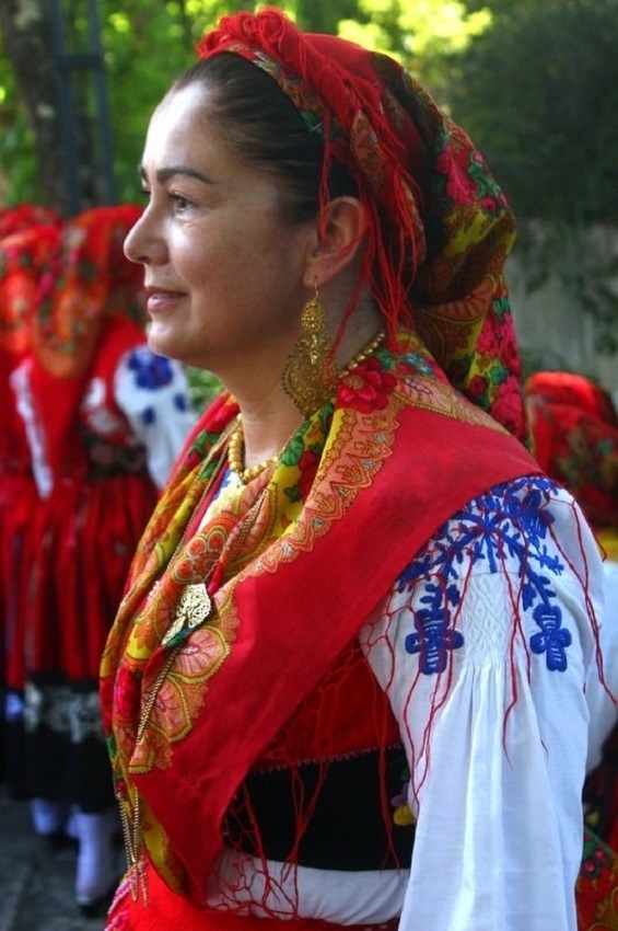 Mordoma (главная дама) — девушка, которой поручается собирать средства для Romaria (праздничного шествия в честь святого покровителя своего прихода), одета в костюм черного или темно-синего цвета, платок из шелка или кружевную вуаль. Во время процессии мордома несет в руке вотивную свечу или веточку, из пальмовых листьев либо фольги. Ее образ завершало множество золотых украшений, с помощью которых она с гордостью демонстрировала свое благосостояние.