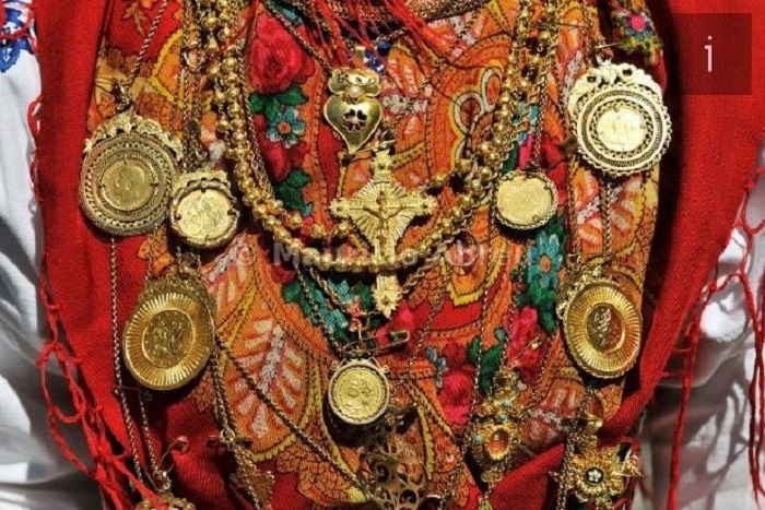 Все наряды очень красивые, с обилием ручной вышивки, и на всех, от малявок до глубоко пожилых дам – масса украшений, судя по всему – золотых.