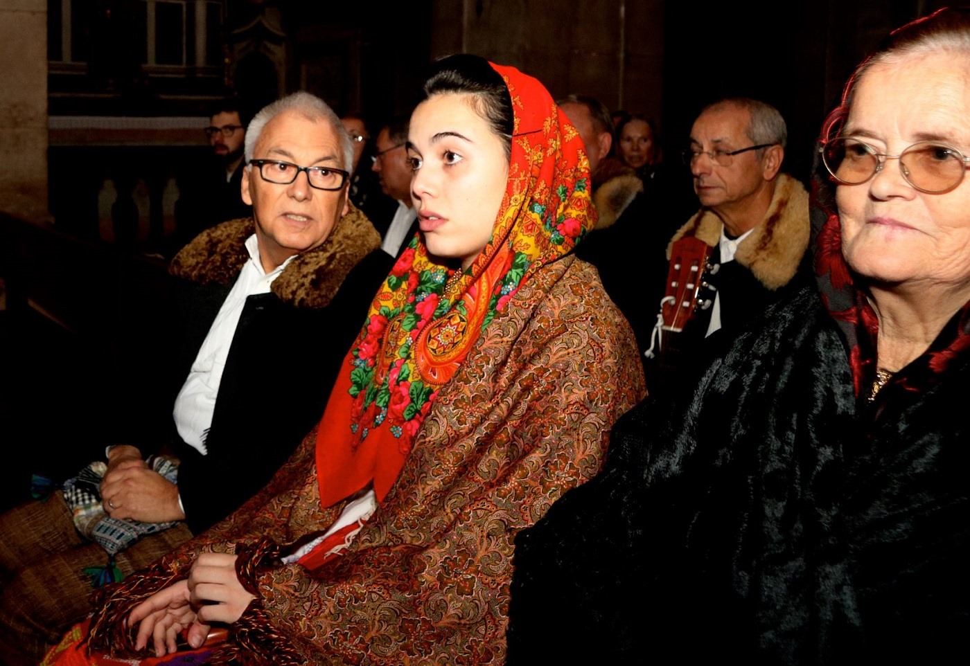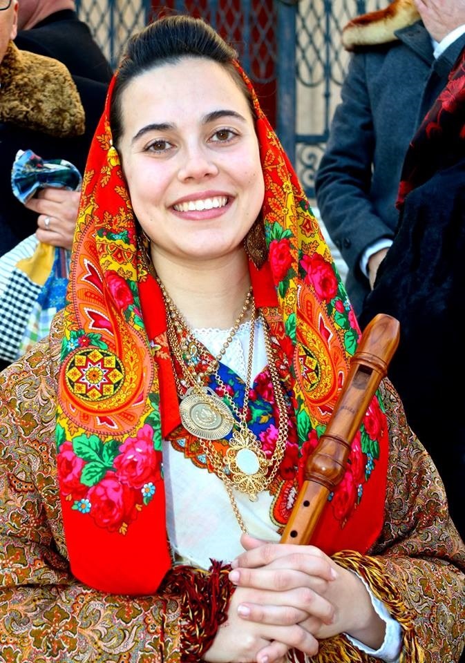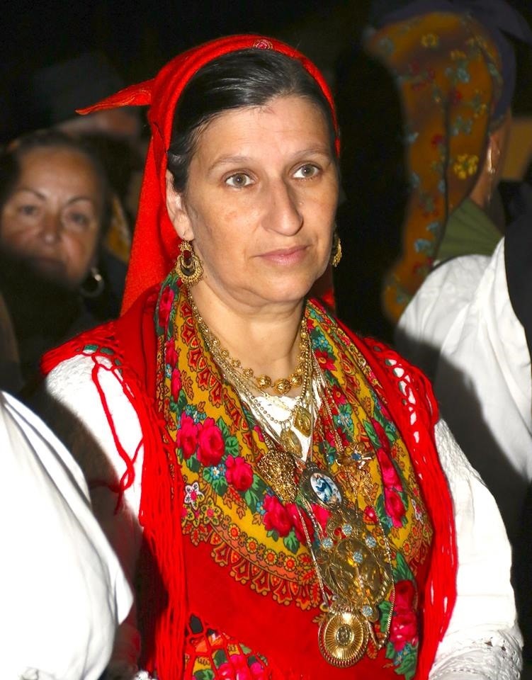 Кстати, на другой участнице – часто встречающееся на португальских праздниках Солнечное лето К.С.Зиновьевой, а на стене на заднем плане - Цветочный веер-15.