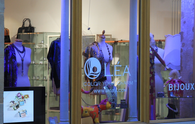 Пробегая несколько раз мимо маленького бутичка с ювелирными украшениями и бижутерией, обратила внимание на освещенные переливающиеся шелковые платки, использованные для оформления витрины. В очередной раз решила все-таки сфотографировать с улицы. Внутрь войти и рассмотреть не решилась - робею я от таких мест, где нет покупателей и даже, кажется, продавцов не видно... :)