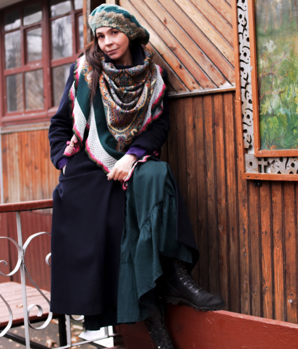 Понимаю, что ,наверное, слишком необычно... Поняла этот уже по реакции прохожих. Прошу прощения, если вдруг у кого-то вызвала беспокойство и тревогу негуманным обращением с платком :>> Каюсь! Но жажда эксперимента оказалась сильнее!...Ах!...