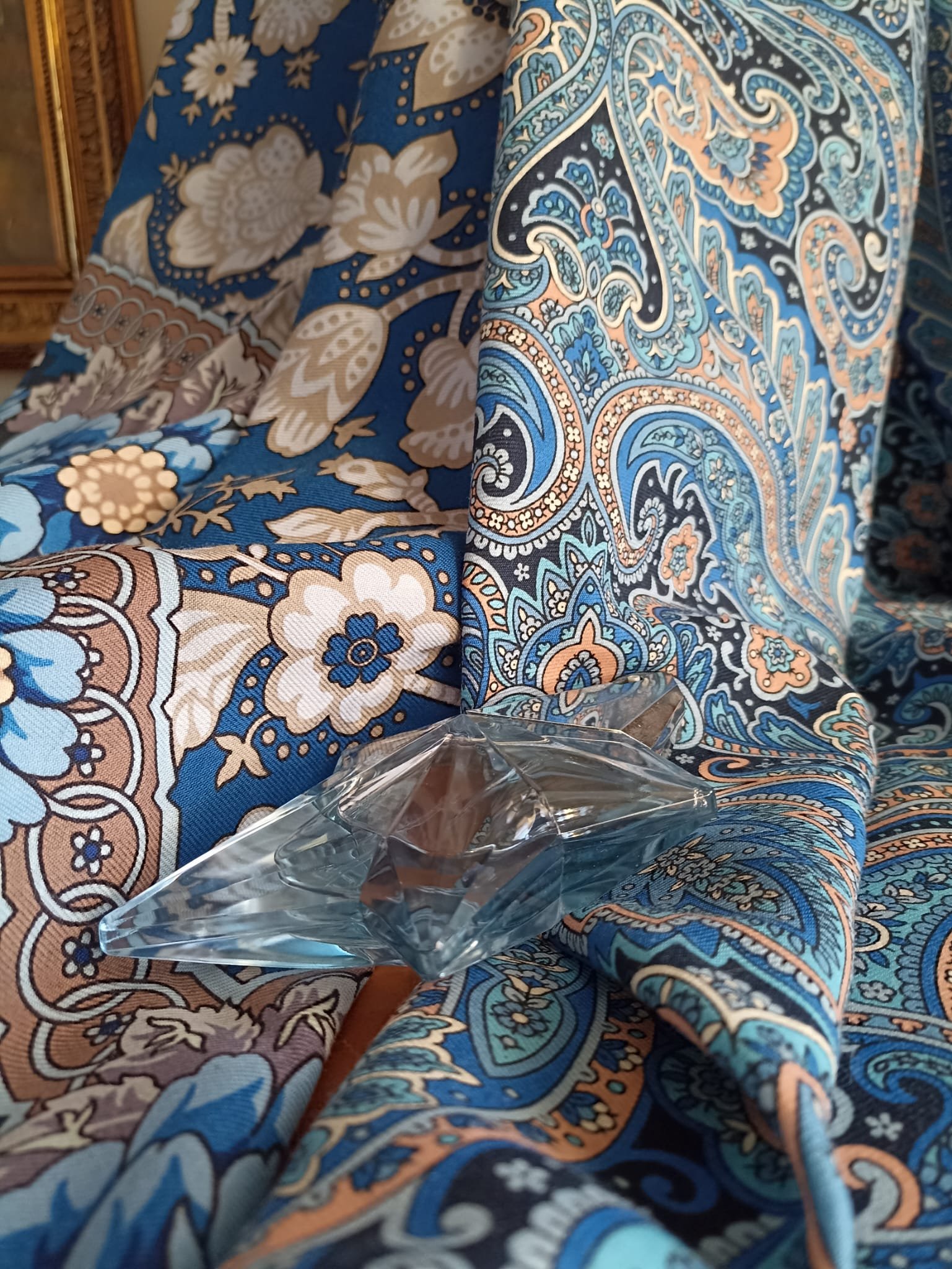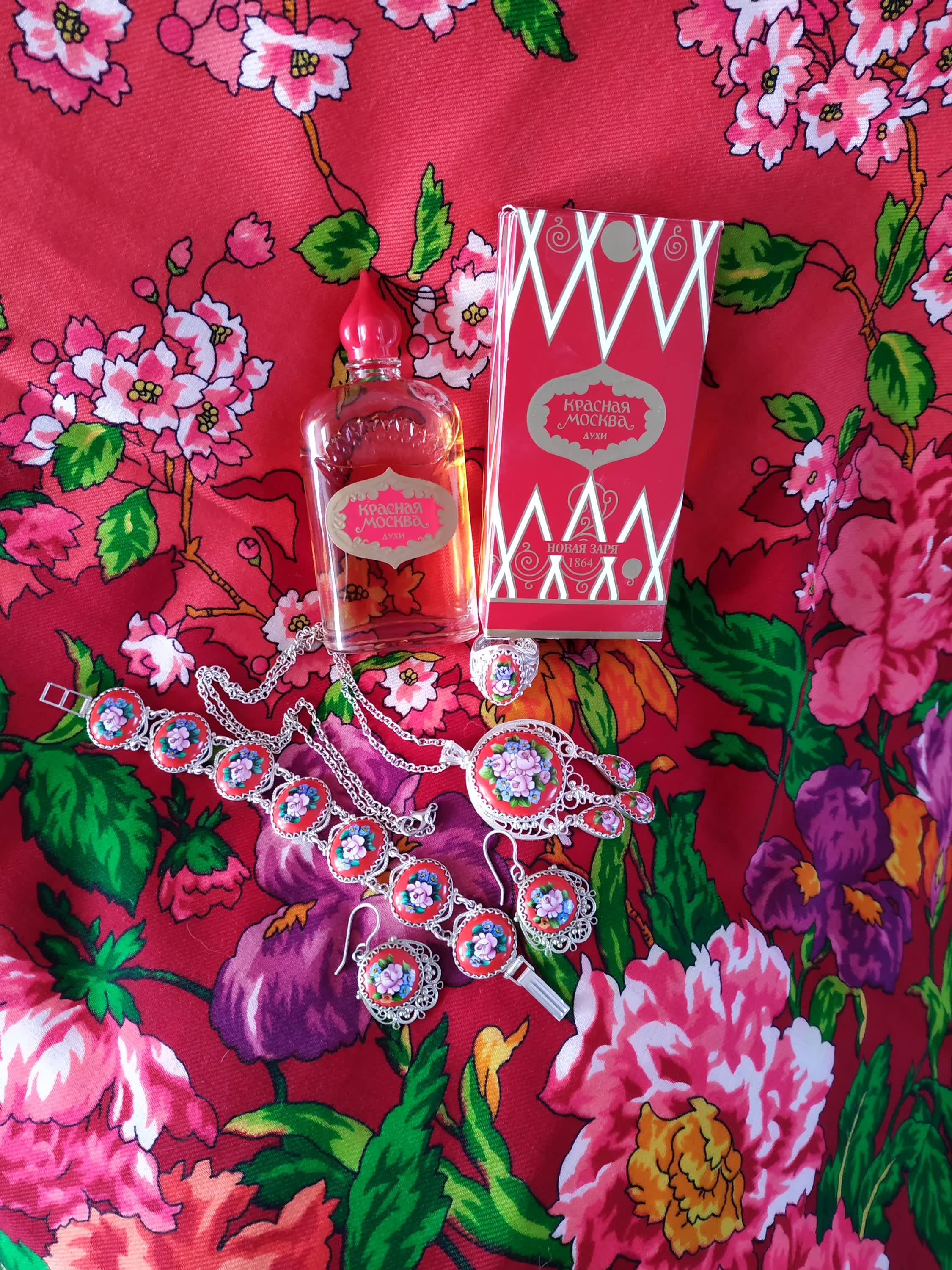Флакон я сфотографировала на фоне вышивки на сумке, которую я вышивала 100 лет назад.