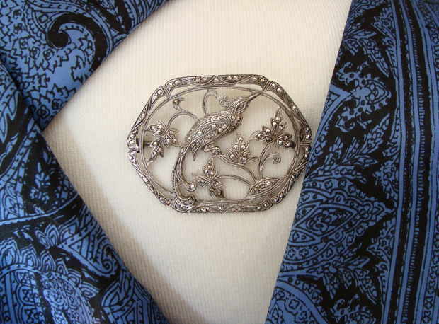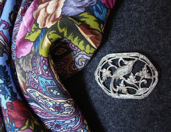 "Две броши из более вменяемого возраста. Носила из лет в 25 - 30. С однотонными кофточками и платочками. Теперь надо категорически пересмотреть свой нынешний цветастый гардероб и вернуться к однотонным вещам. Раз платочное увлечение так накрыло. Глядишь, и броши все вытащу из запасников