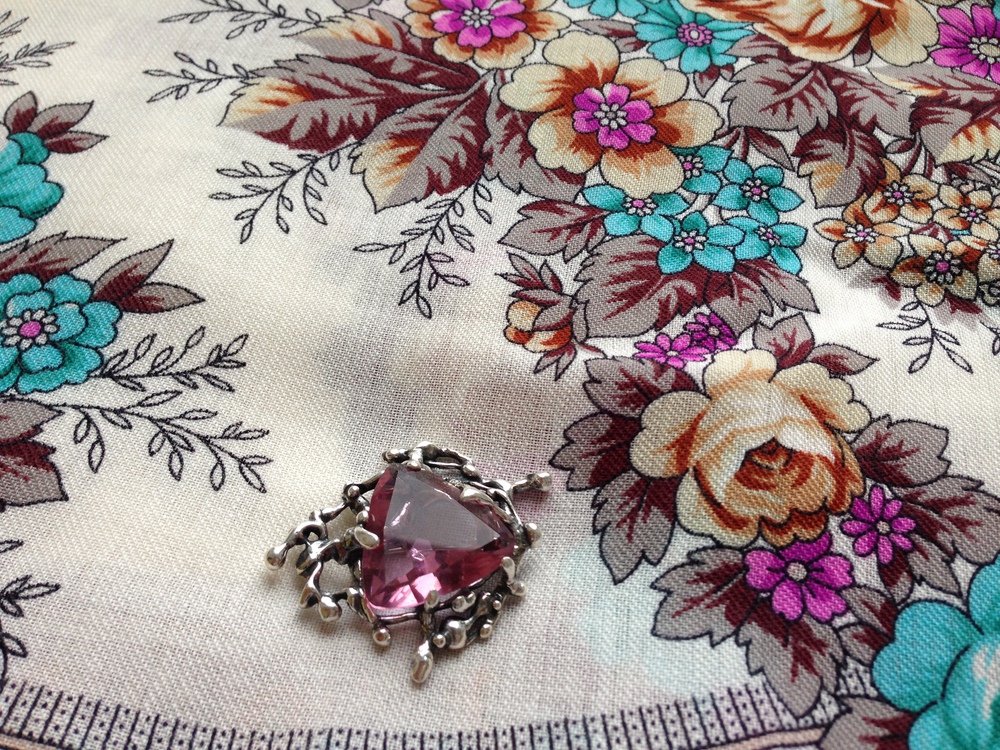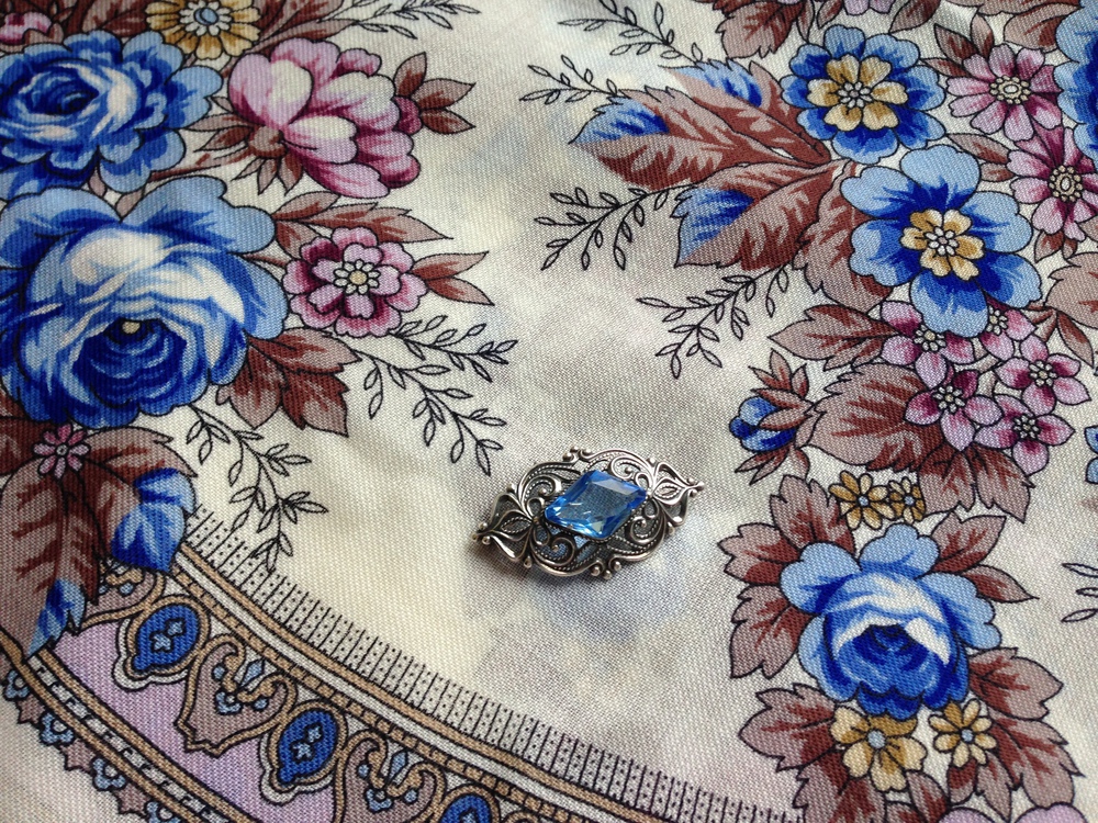 Моя самая первая брошь из этой серии. Случайно увидела её в витрине, она потемнела от времени, как - будто с тёмным аметистом, а это стекло.