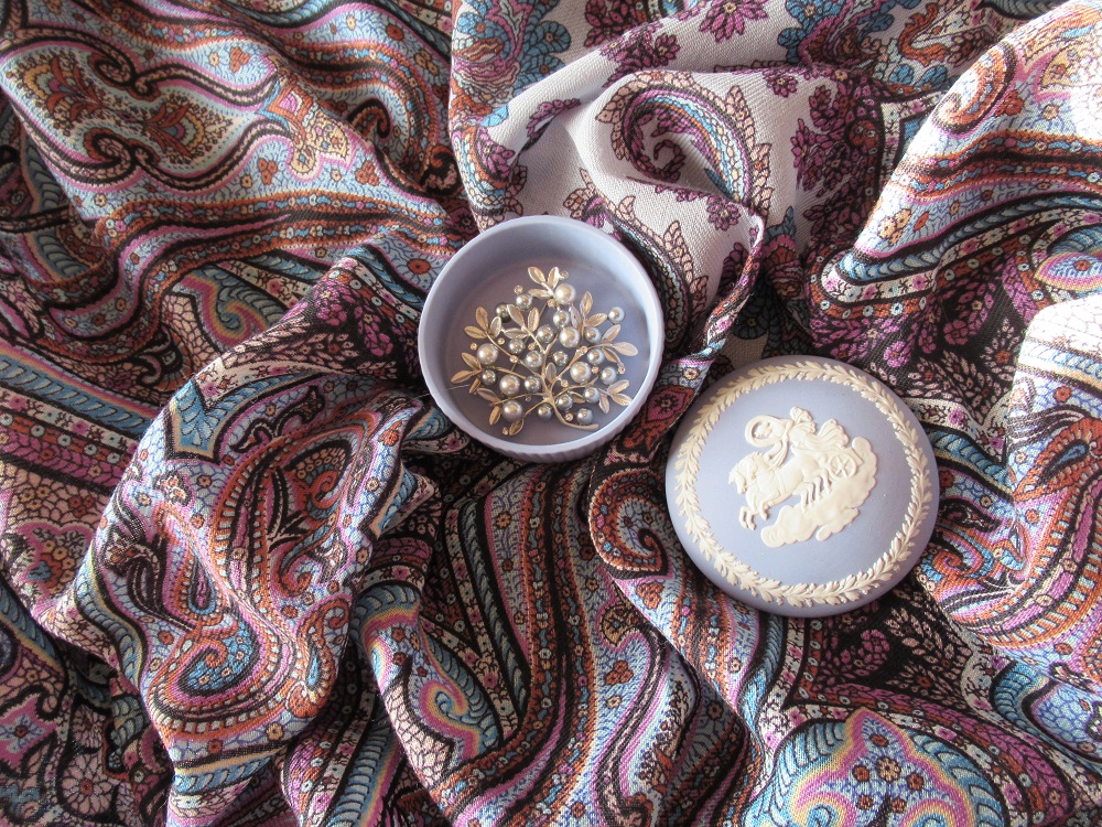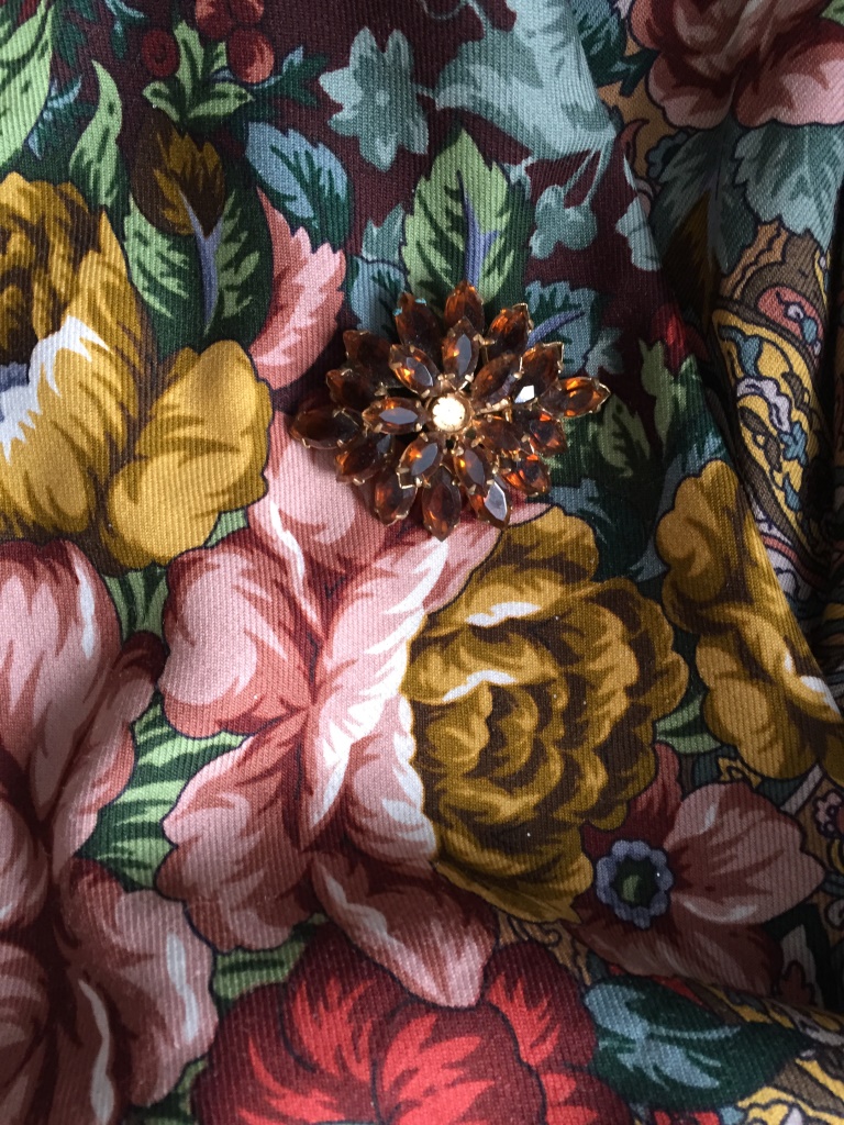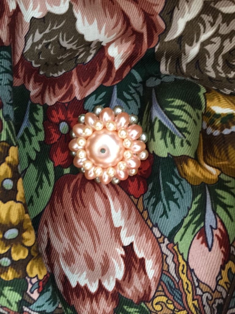 а я несу две старые,виды видавшие брошечки...у одной уже и глазок потерян,но приспособила сейчас к шальке и ношу..обе,по очереди,в зависимости от низа-с розовым платьем-брошка с жемчугом,с бежевым низом или кориШневым-брошка из чешского стекла..