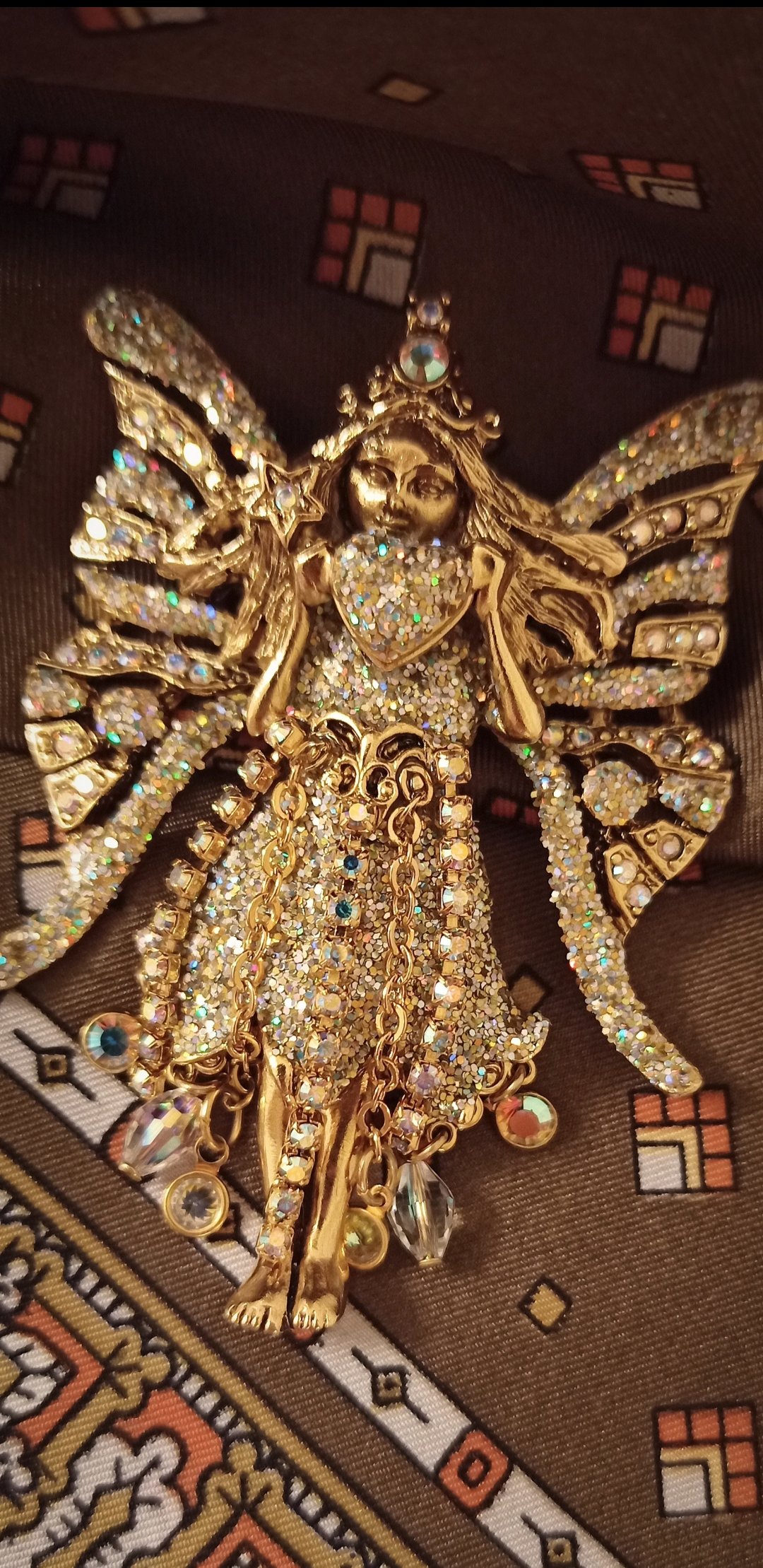 Брошь винтажная, производитель - известный американский бренд Kirks Folly, который специализируется на производстве бижутерии в стиле "фэнтези". У них целая серия фей, у каждой свое название. Например, эта - "Фея кристаллов". У меня есть и другие украшения этого бренда, но не знаю, где их здесь можно показать, да и надо ли?