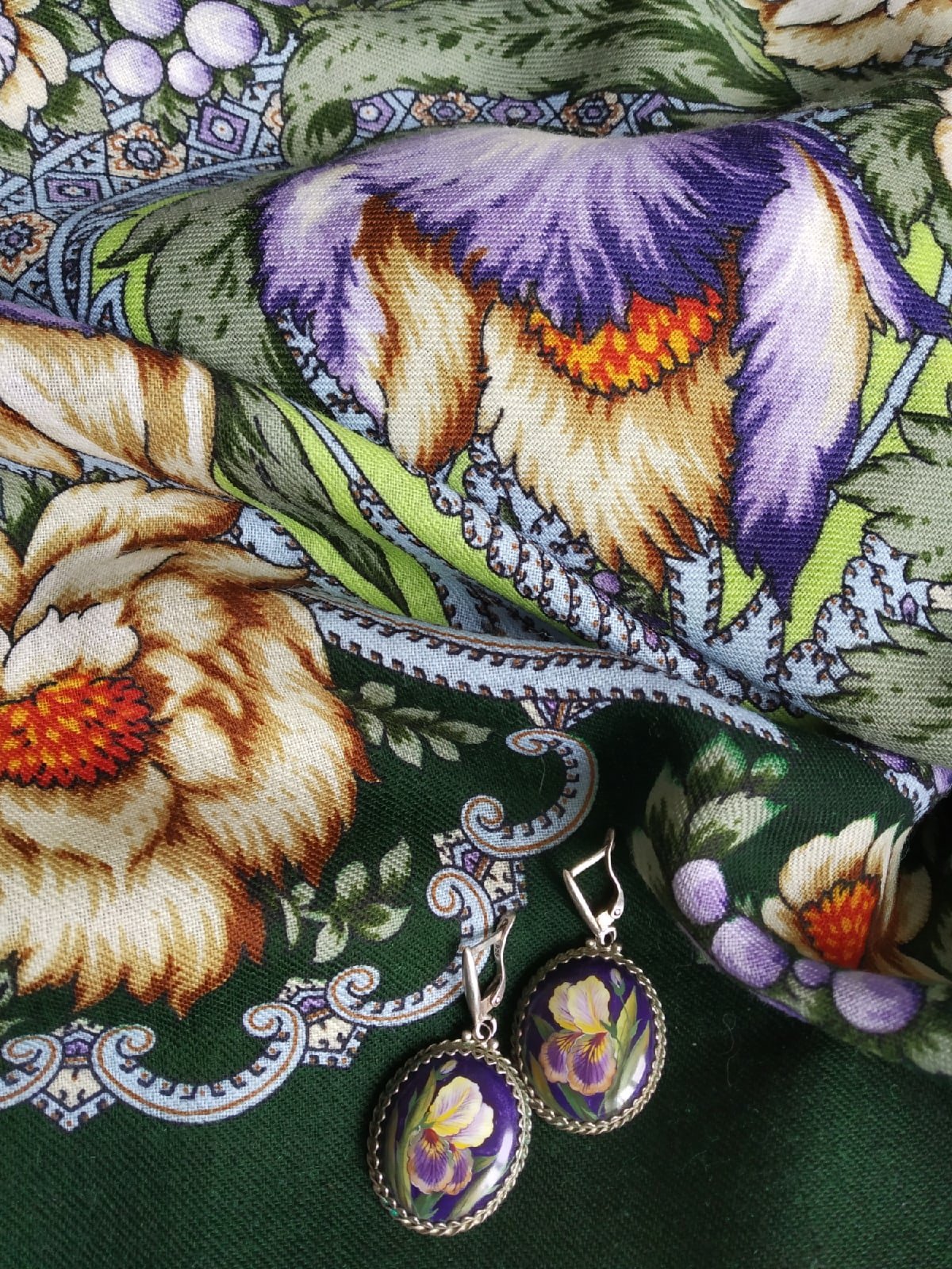 как красиво сочетаются серьги с платком! Точно сказано - нашли друг друга.