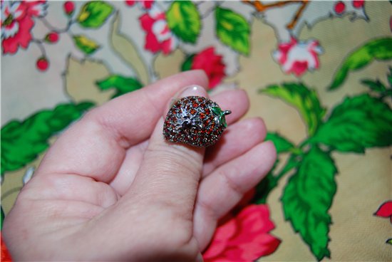 Сложно нормально сфотографировать, но, что уж получилось, купила летние украшения, клубнички, гранаты в серебре, на кольце паучок , брюшко с топазиком. Как с Цветущим Садом? С чем еще сочетается?