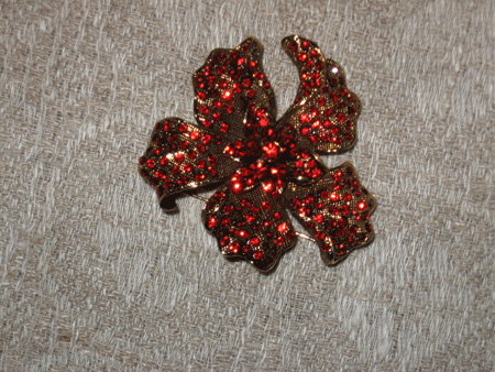 Это авторская работа - брошь-цветок с гранатами-спессартинами. Для этого изделия была выбрана красная "Волшебница": Здесь брошь поместили на платочный фон: Надеюсь, я не очень утомила диферамбами "Отраде"?