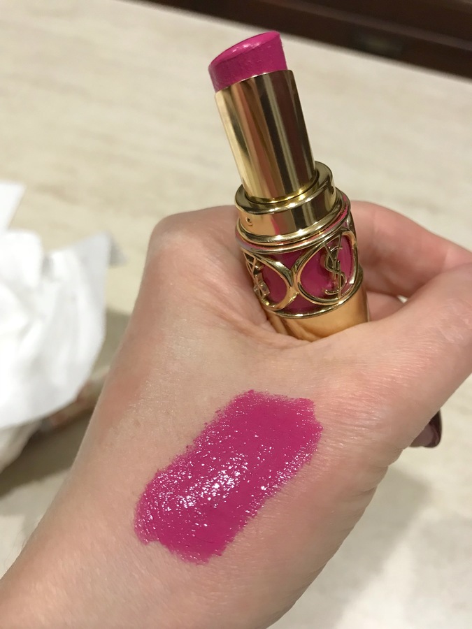 И "старинка" для любителей фуксии ( и в платках в том числе): нежно-розовая фуксия YSL,помада для губ ROUGE VOLUPTE, номер 10 ( снята с производства, но еще можно встретить в магазинах).
