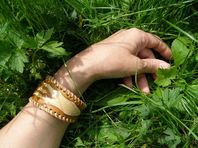 Покупала ещё прошлой осенью в Вологде берестяной браслет. Этим летом надела. Классная вещь!
