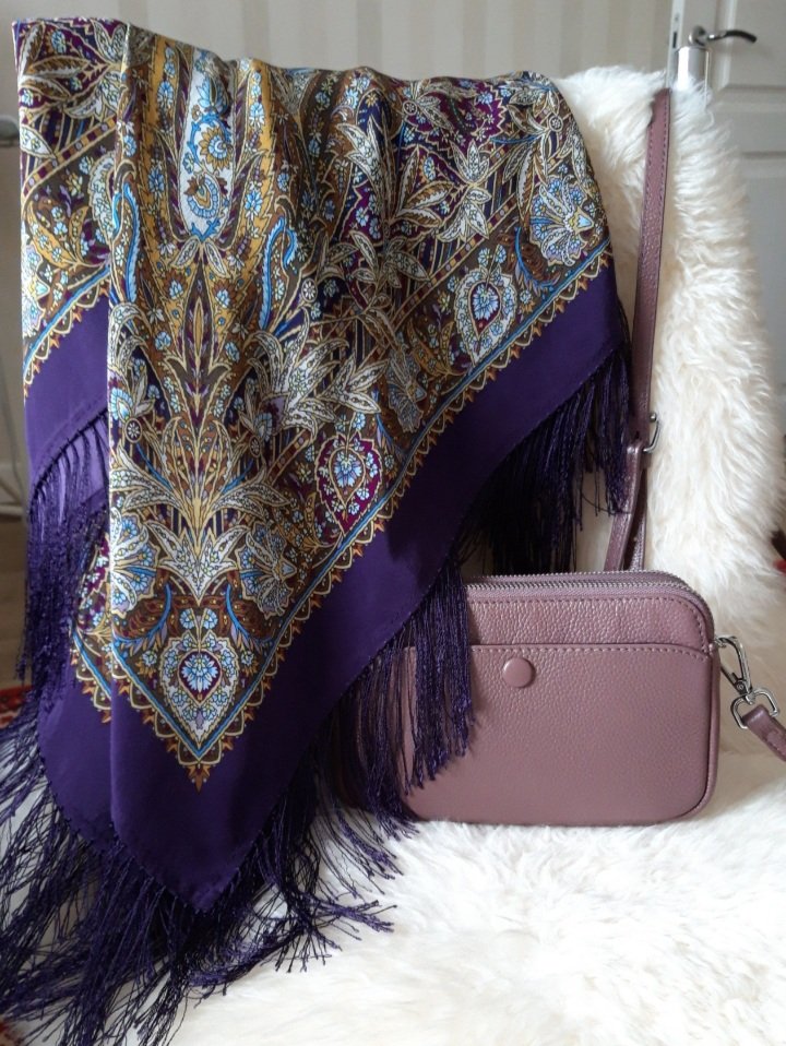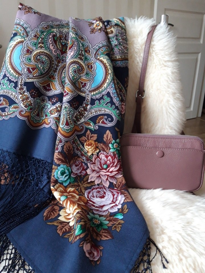 Ванесса! Очень удачно! Красиво! Форма сумочки повторяет округлые мотивы на шали.