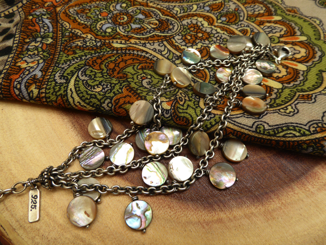 Родонит смотрится глухо и тяжело, гранат, коралл тоже. Яшму и сердолик платок съел и не подавился. Хотела еще розовый или арбузный турмалин приложить,но были только бусы.