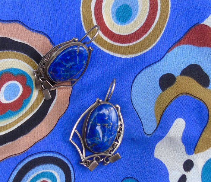 ТаЮрик, красивый лазурит, интересный на нем рисунок, будто самолеты в небе оставили след. Интересно на вас посмотреть серьги