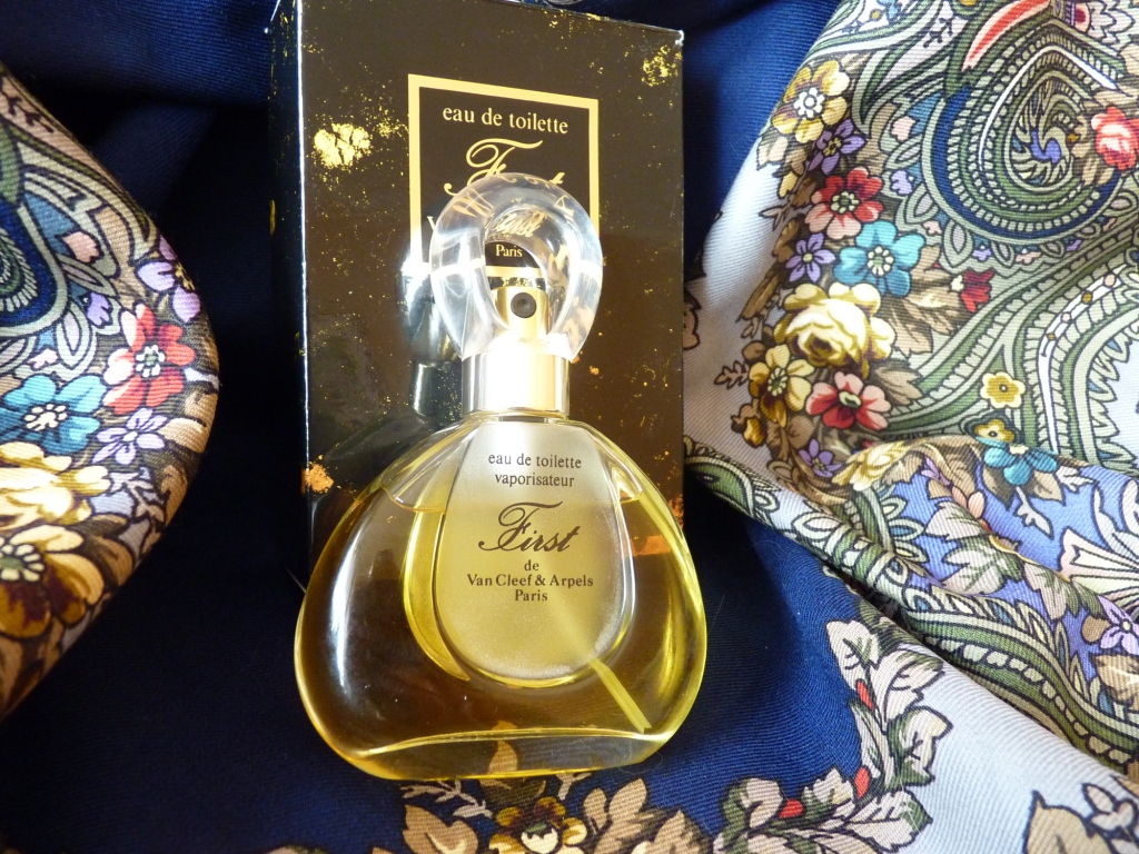 А потом мне добрая фея подарила миниатюрку винтажного First и я поняла, что красота есть. Очень нежный, женственный аромат весенних цветов, которые ставят в холодную воду, чтобы подольше цвели, тонкая горечь стеблей, невесомая, почти прозрачная пудра. А потом вся композиция теплеет, становится богаче, как бы приземляется на коже. First хочется носить ранней весной или осенью, по последнему или первому заморозку, когда воздух как будто хрустальный. И небо высокое, серо-голубое, но кое-где уже намекает на синеву. Вот, теперь этого счастья у меня большой флакон. :) Сочетнула его с Небесным-14