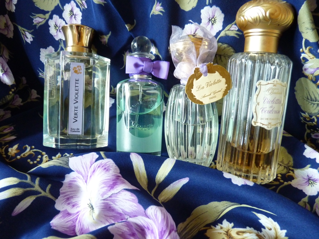 Слева направо: Verte Violette, L'Artisan; Violetta, Penhaligon's; La Violette, Annick Goutal; Violettes des Toulouse, Berdouos