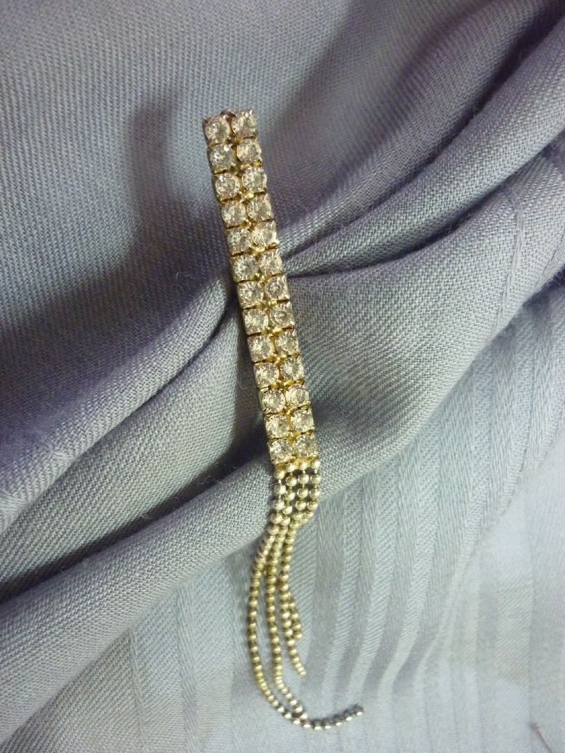 Это точная копия английской ( французской?) булавки размером сантиметров 12-14, выполнена из желтого металла, наверное - латунь. Примитивнейшая вещица, а вот поди ж ты, только ею хочу закалывать платки!