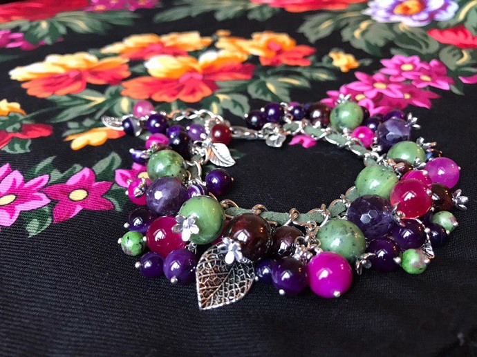 Скоро праздник и к празднику сделала браслет из аметистов, нефрита, граната и агатов (спасибо китайцам, покрасили агаты в нужный оттенок фуксии