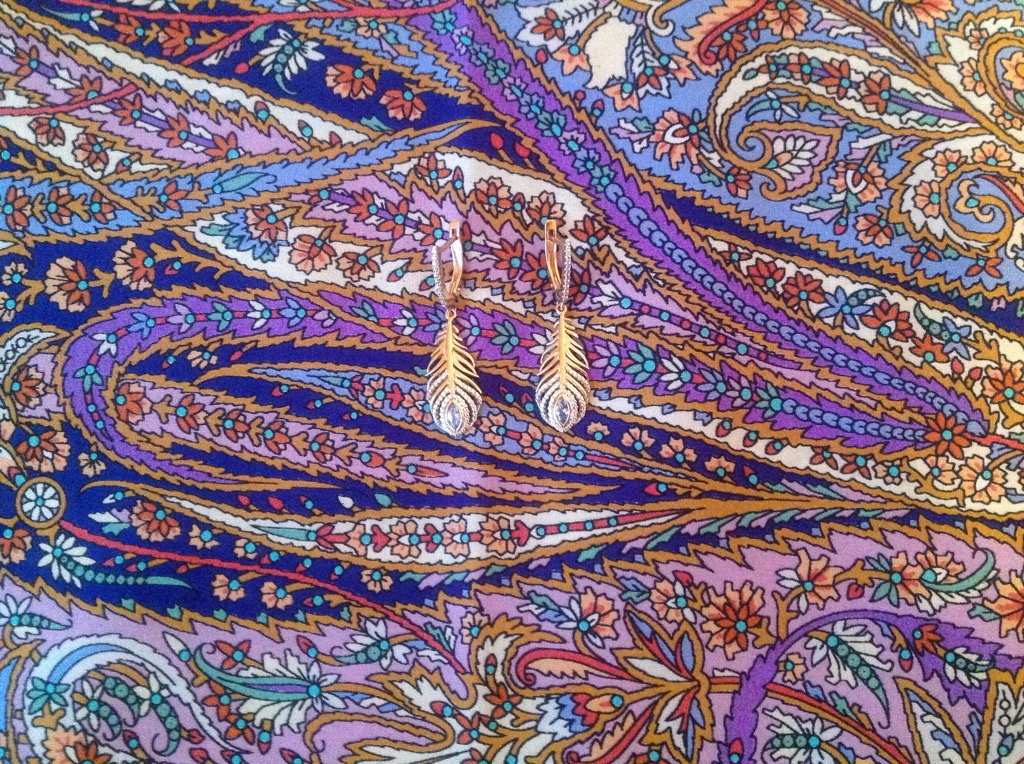 Я решила себя побаловать новыми сережками. Ничего особенного, с фианитиками. Дизайн понравился очень: оригинальные, но и каждый день можно носить без проблем. Рисунок на Жасмине 13 по форме перекликается с сережками, поэтому запечатлела их вместе.