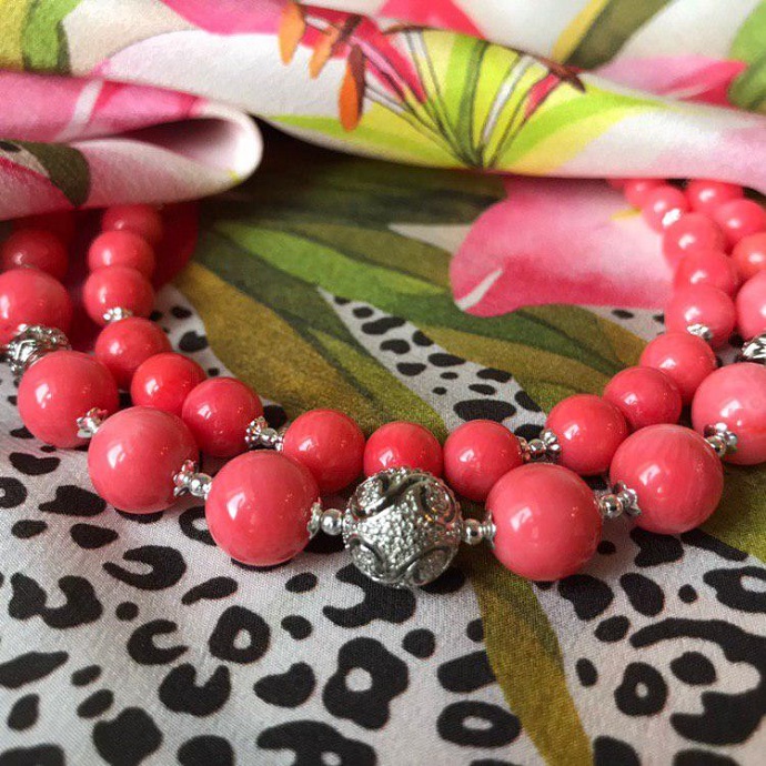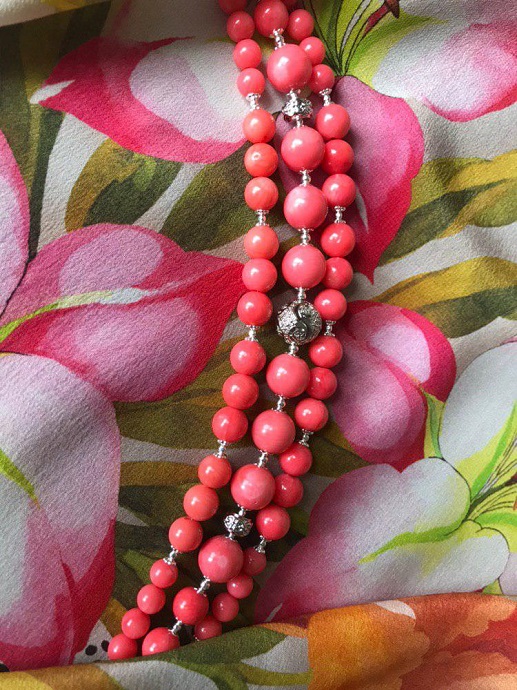Я не так давно купила Шёлковое прикосновение 2 Ирины Петровны Дадоновой. Очаровательный платочек. Делаю к нему коралловый браслет. Не решила 2 ряда сделать или 3 ?