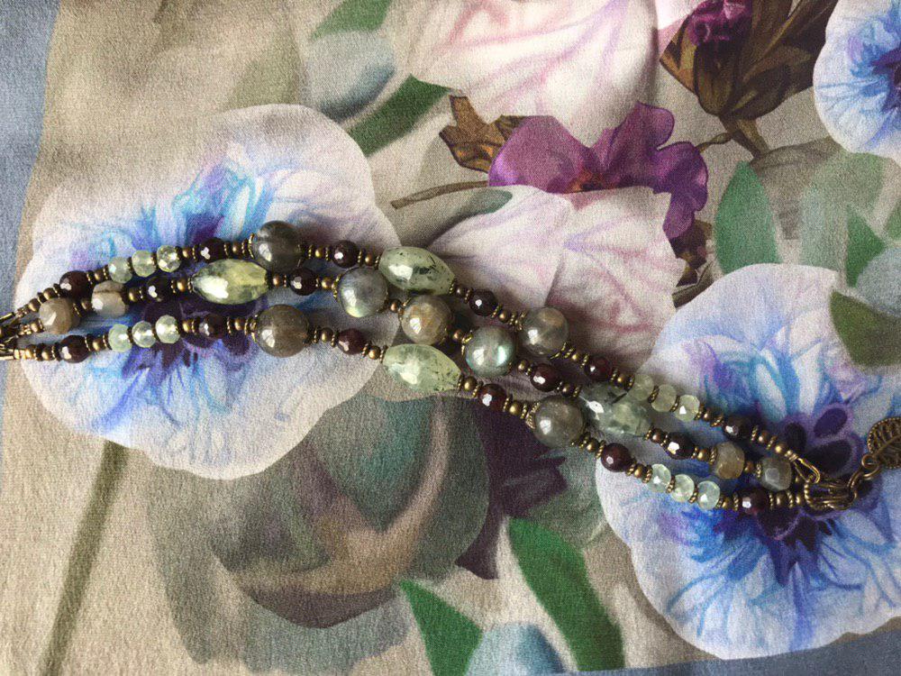 У меня такой браслет с лабрадором, пренитом с гранатом. Платочек крепдешин "10136", вид 1, 65х65 см, проект Палитра. Этот платочек у меня оказался в числе самых носимых.