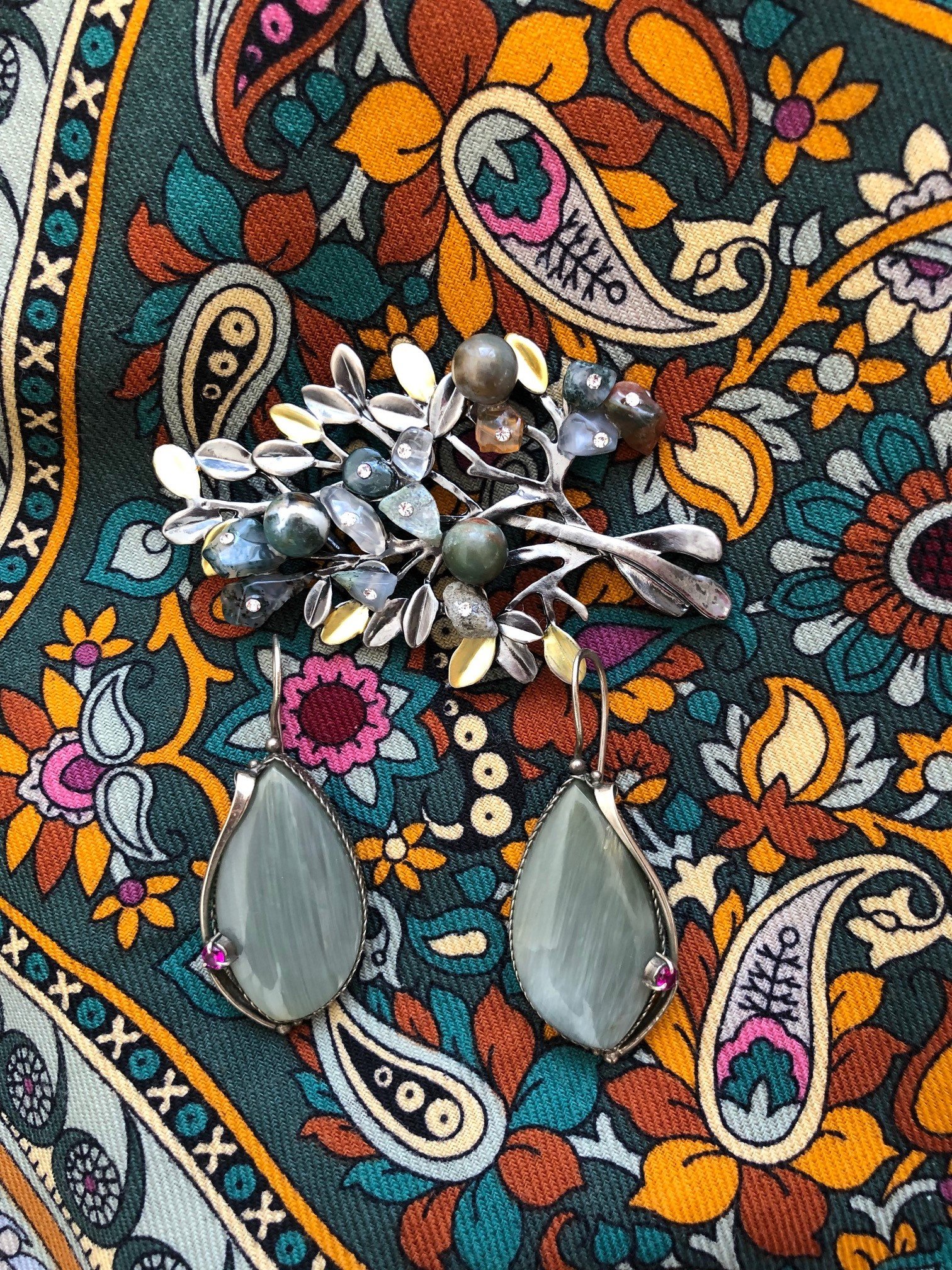 отмечусь в теме с серьгами и брошь-кулоном на "Ручейке"и "Ожидании"-10. К серо-зелёному "Ожиданию" вообще подошли, как родные.