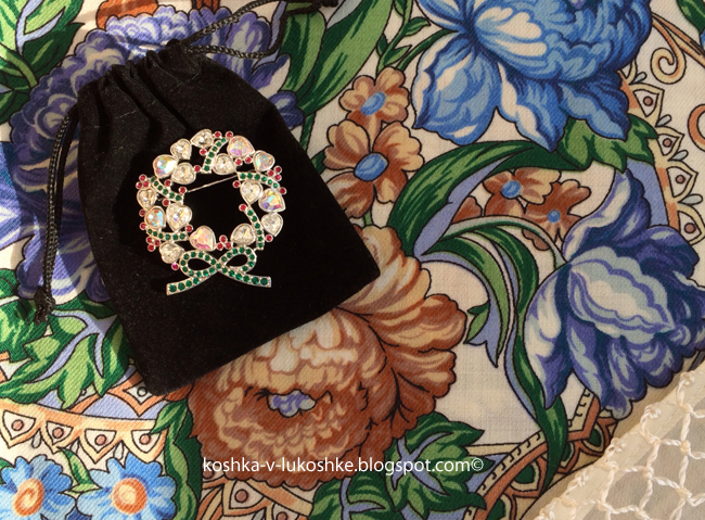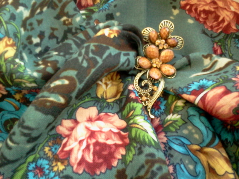 Редко закалываю платки, но на этот редкий случай есть нес-ко красивых брошей (одну из них и покажу) в диаметре составляет ок.5,5 см