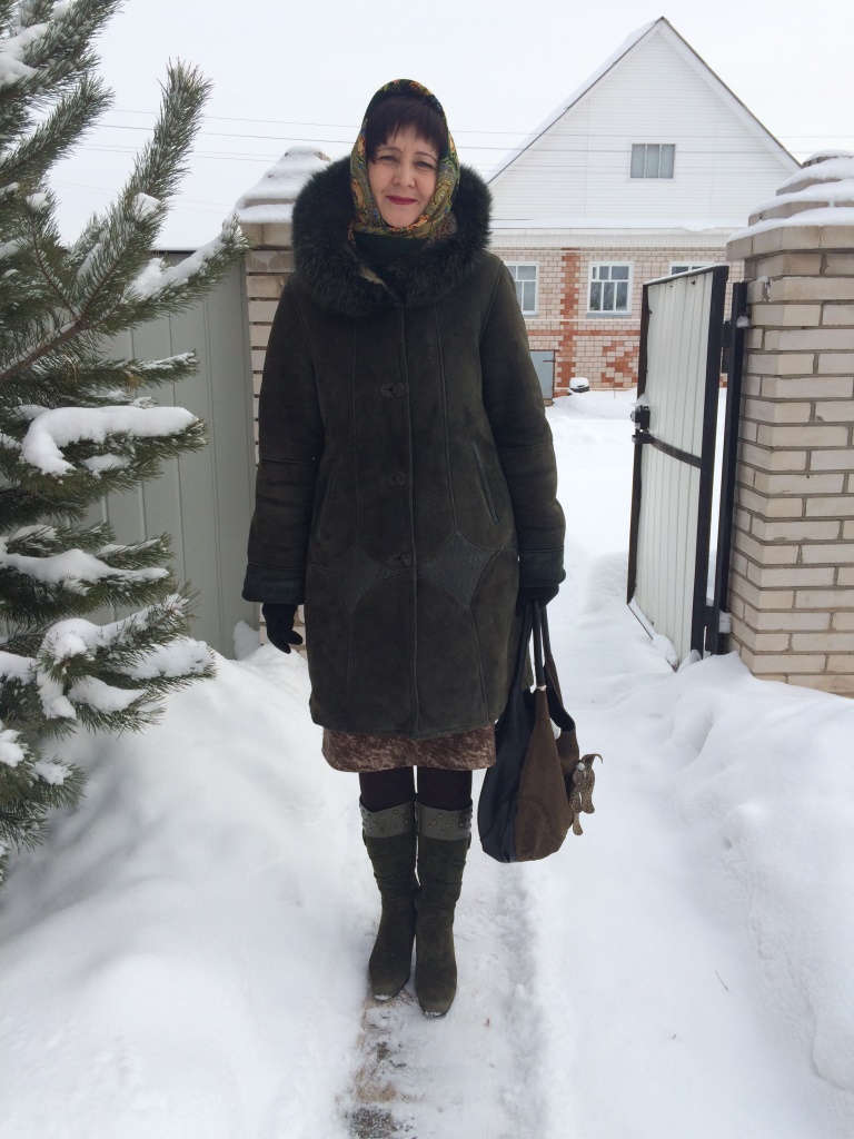 морозы пришедшие заставили вспомнить про давний тулупчик...зеленый,вестимо...ну и зеленого красавца У камина-9 сюда же и приладила..да так и носила вчера... вообще то в валенках,но ради фотки и сапоги достала,зеленые конешна..